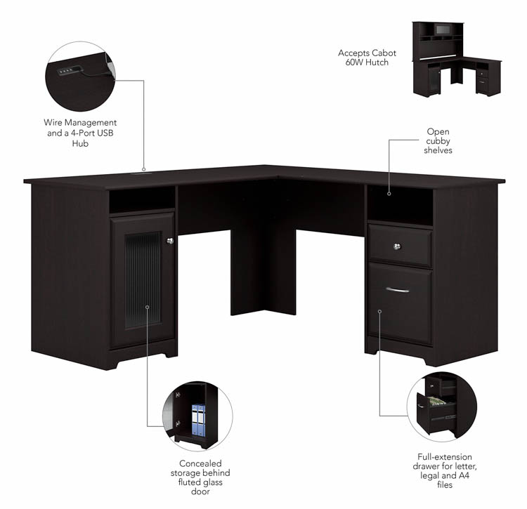 The Bush Furniture Cabot 60" L-Desk with Hutch is the perfect solution for your home or work office.