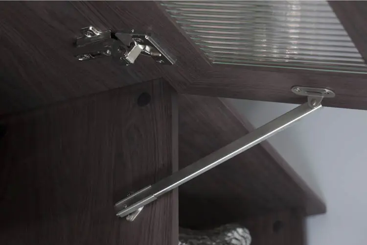Storage features included a closed cabinet with a fluted glass door, a box drawer for supplies, and a filing drawer.