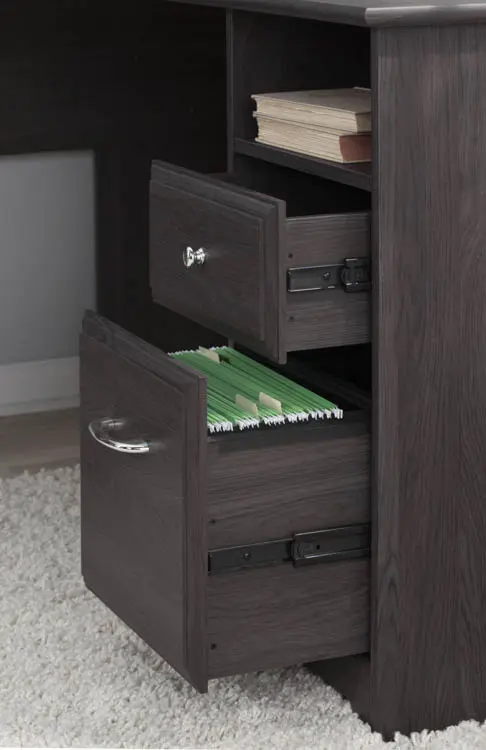 File drawer opens on smooth full-extension ball bearing slides for an easy reach to letter, legal and A4-size files.