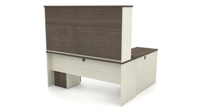 The hutch for credenza offers large closed storage space, efficient wire management and side moldings.