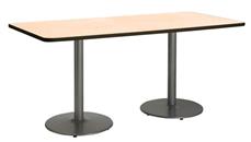 The table is 1.25" thick with a High Pressure Laminate surface and T-Mold edge that's durable, easy to clean and won't crack or peel.