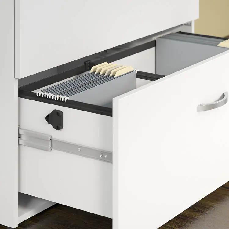 The Lateral File Cabinet drawers glide on smooth, full-extension ball-bearing slides so you'll have no trouble reaching items in the back.