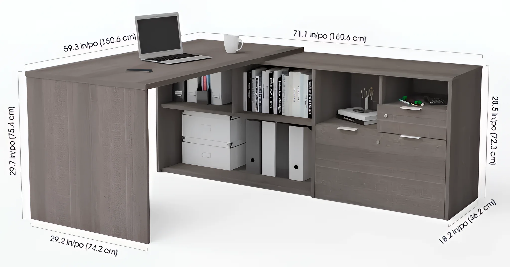 • L-Desk with Two Drawers is made of durable 1" commercial grade work surface with melamine finish that resists scratches, stains and wear