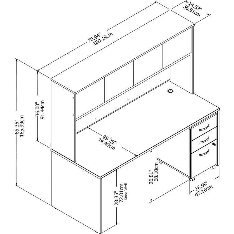 • Bundle includes: 72" W x 30" D Office Desk, 72" W Hutch, 3 Drawer Mobile File Cabinet (Assembled)