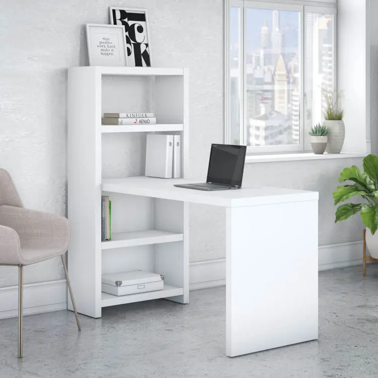 The Bush Business Furniture Echo Bookcase Desk brightens the work space, kitchen or craft room with a contemporary charm and unique space-saving design.