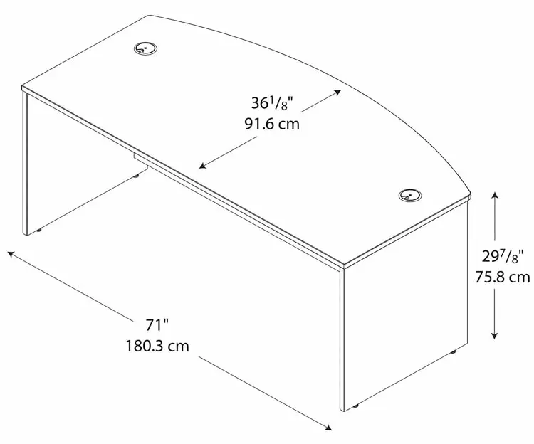 The expansive 72"W surface provides plenty of room for your laptop, phone and paperwork, along with wire management grommets to conceal cables.