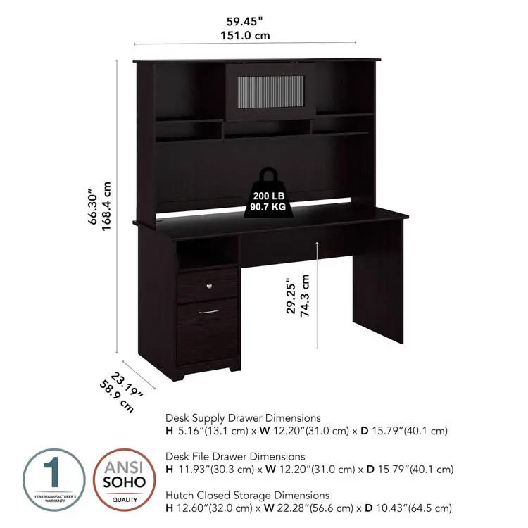 The Computer Desk with Hutch and Drawers meets ANSI/SOHO quality test standards for safety and performance.