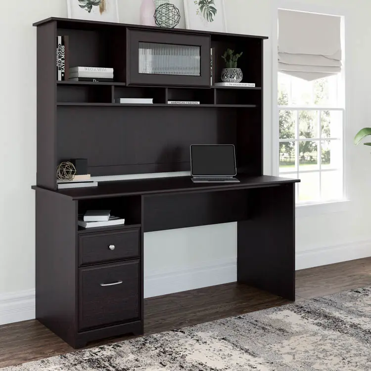 The Bush Furniture Cabot 60" W Computer Desk with Hutch presents a home office solution with transitional style.