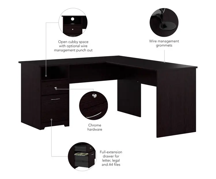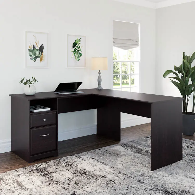 The Bush Furniture Cabot 60" W L-Shaped Computer Desk with Drawers presents a home office solution with transitional style.