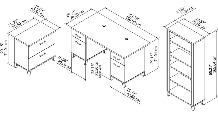 • Bundle includes: 60"W Office Desk, Lateral File Cabinet, and 5 Shelf Bookcase