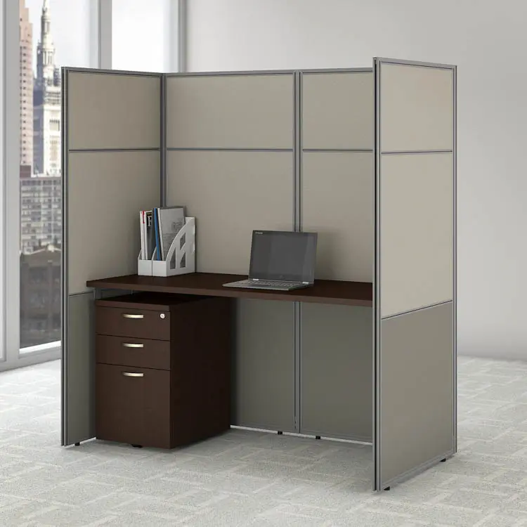 The Bush Business Furniture Easy Office 60"W Cubicle Desk with File Cabinet and 66"H Closed Panels Workstation offers a simple configuration that can be set up quickly, yet is durable enough to withstand the rigors of everyday use in a fast-paced professional environment.