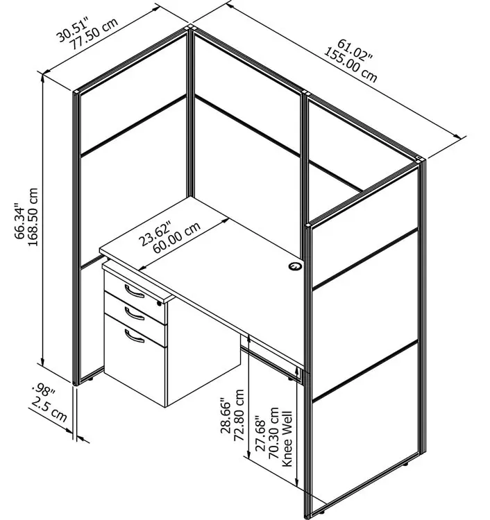 • Bundle includes: 60"W x 24"D Straight Office Desk, Set of 2 - 60"W x 66"H Cubicle Panels with Corner Connectors, 3 Drawer Mobile File Cabinet