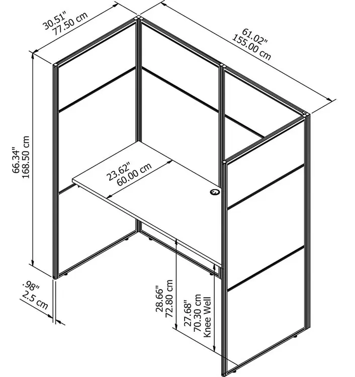 • Bundle includes: 60"W x 24"D Straight Office Desk, Set of 2 60"W x 66"H Cubicle Panels with Corner Connectors