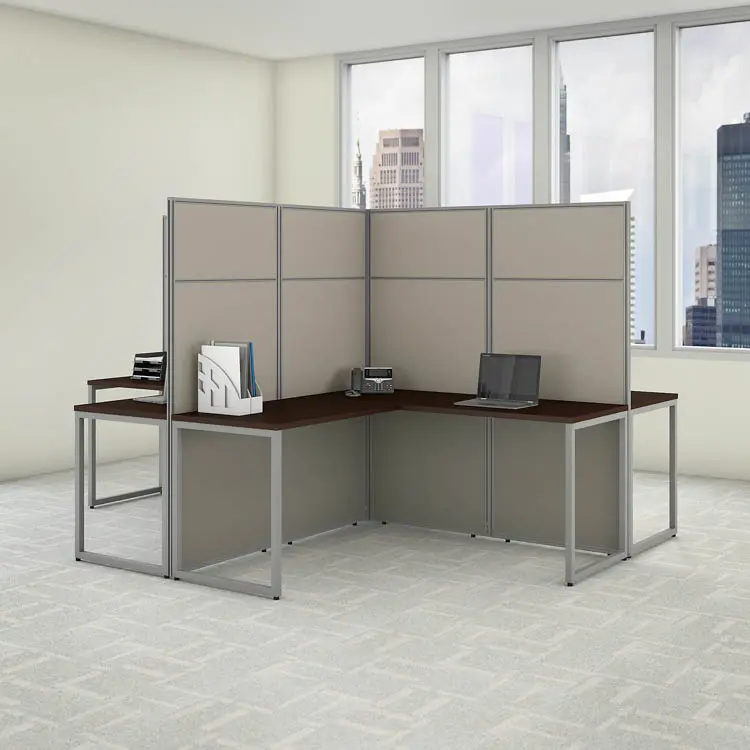 The Bush Business Furniture Easy Office 60"W 4 Person L-Shaped Cubicle Desk Workstation with 66"H Panels offers a simple configuration that can be set up quickly, yet is durable enough to withstand the rigors of everyday use in a fast-paced professional environment.