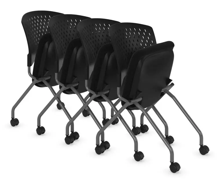 • Armless Nesting Chair features casters, a titanium frame and fabric seat