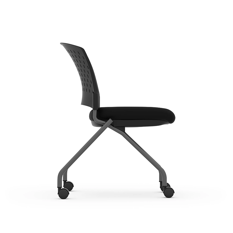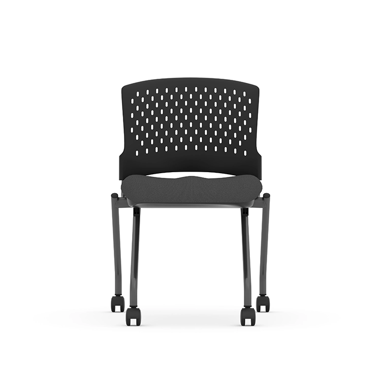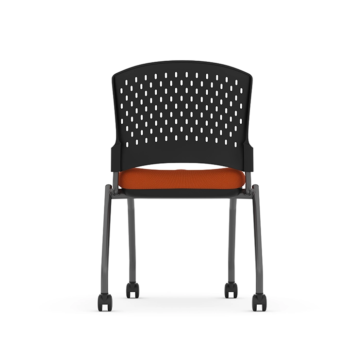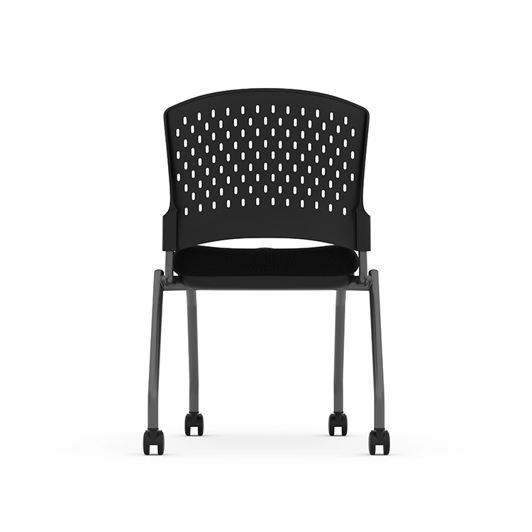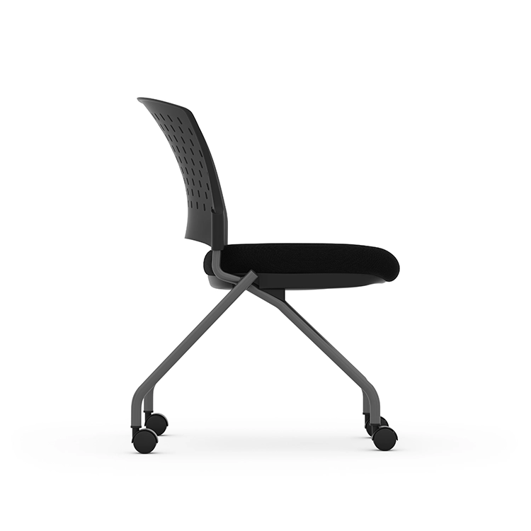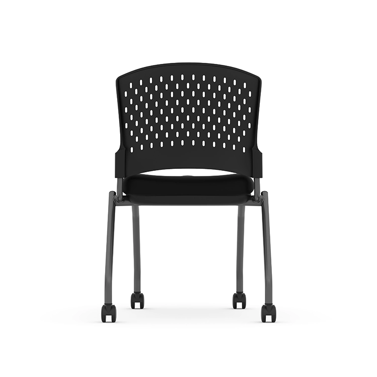 • Armless Nesting Chair features casters, a titanium frame and fabric seat