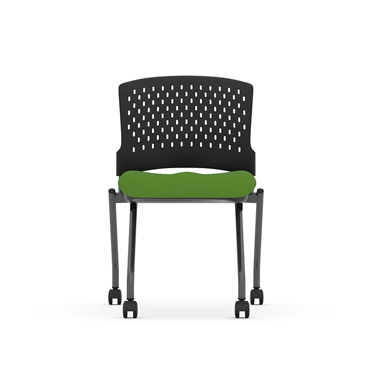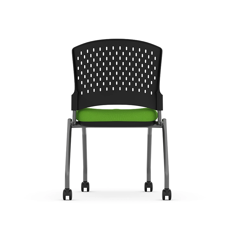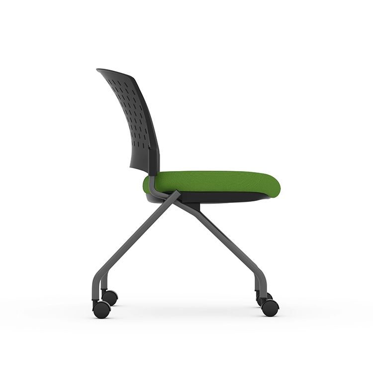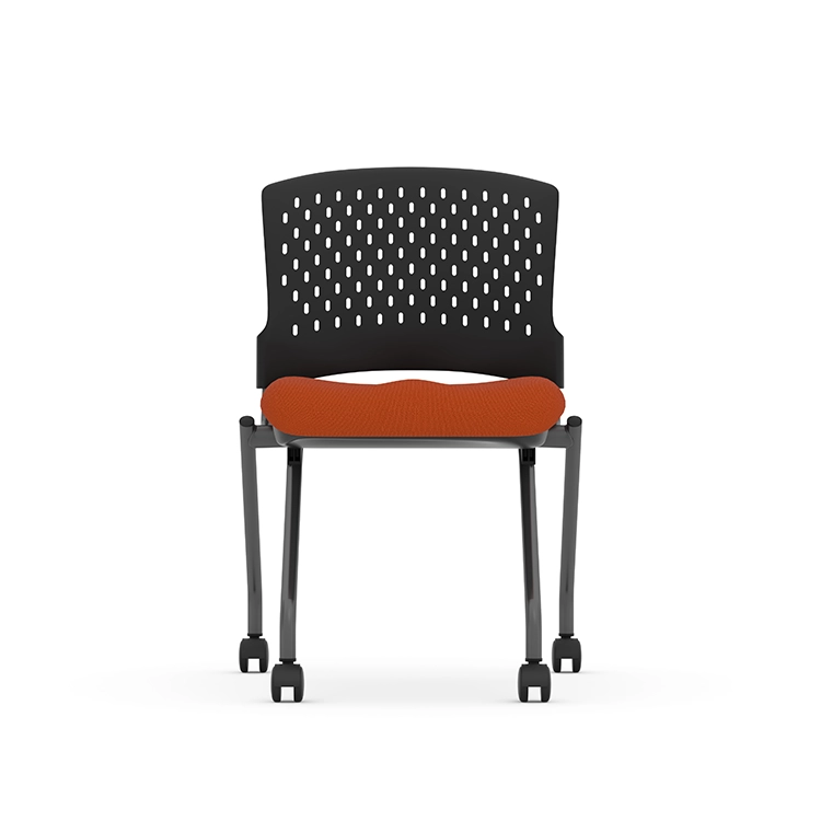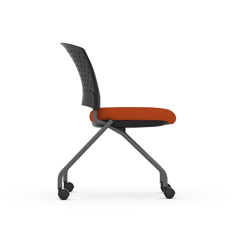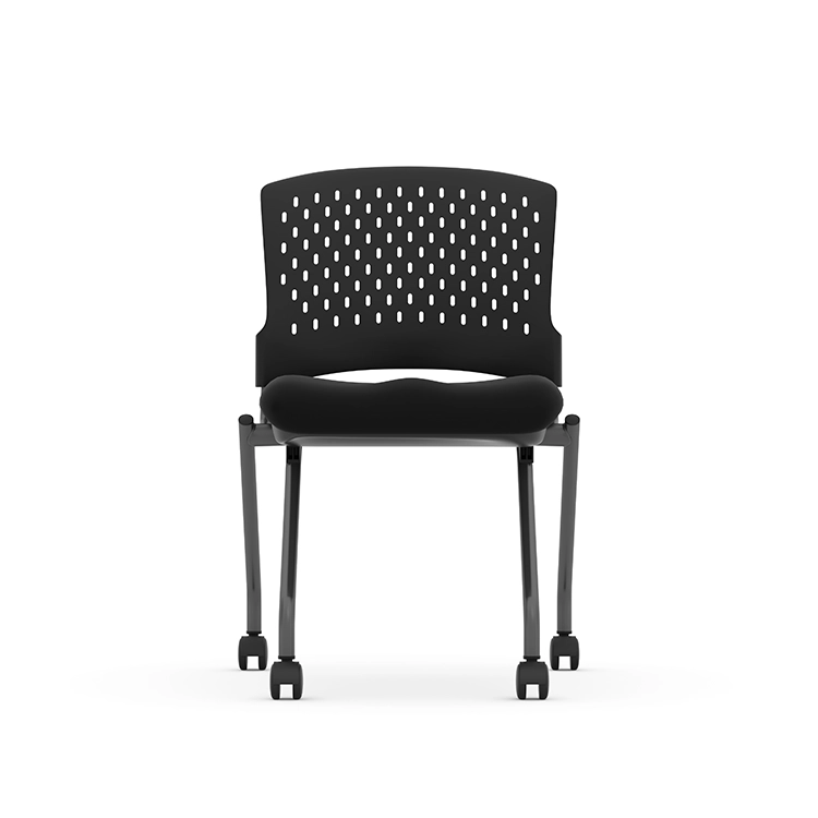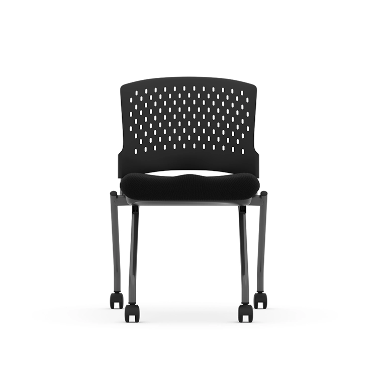 • Armless Nesting Chair features casters, a titanium frame and fabric seat