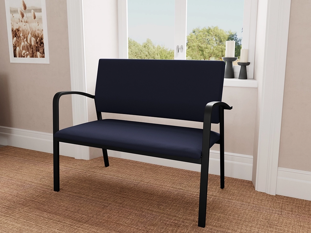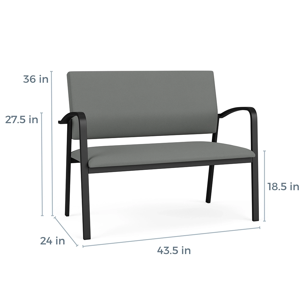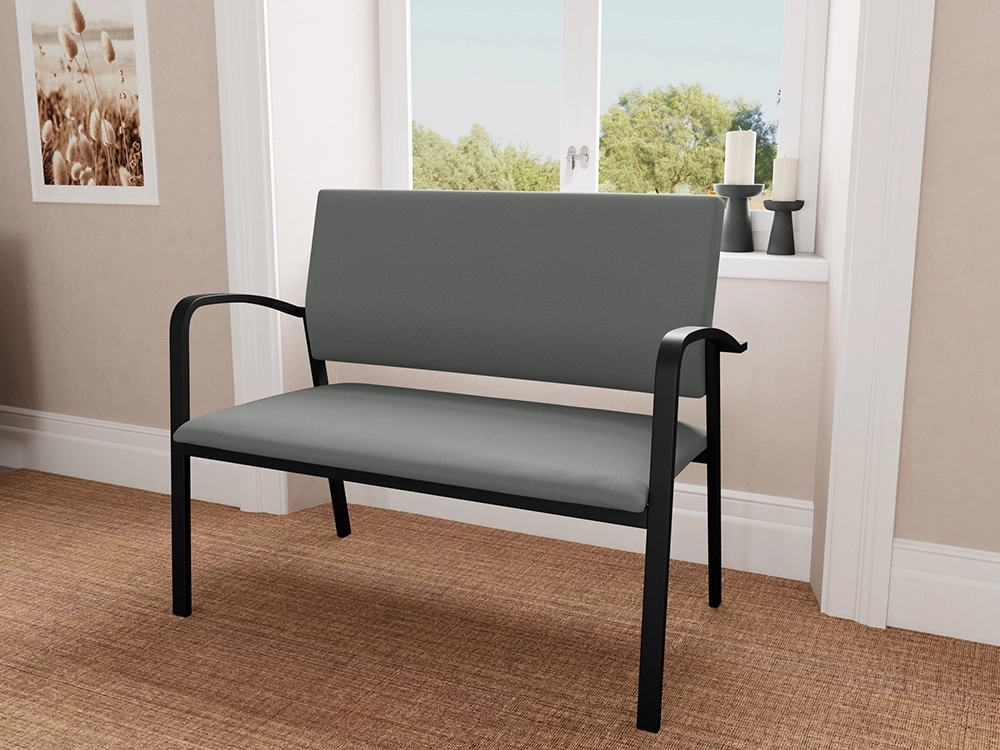 The Newport Loveseat with its bold, contemporary styling, sloped arm design, and upholstered seat and back cushions will give your space an inviting, welcoming air.