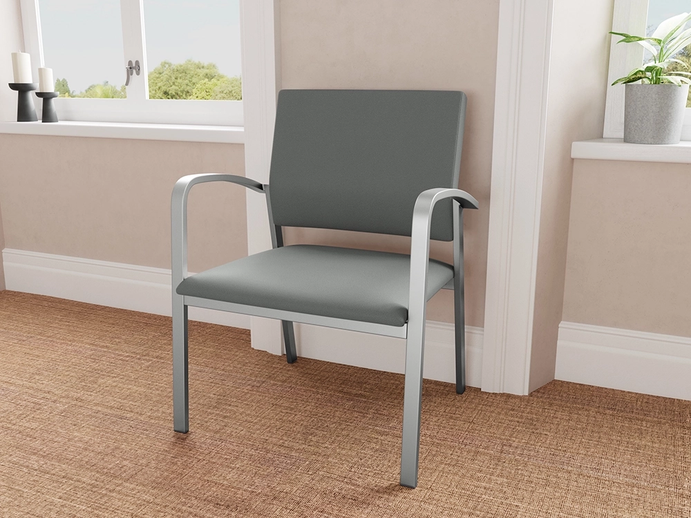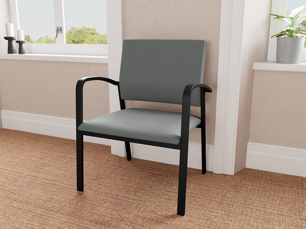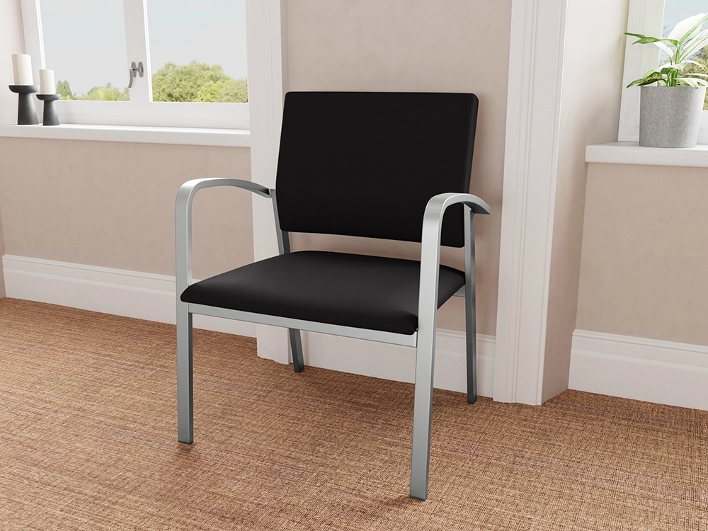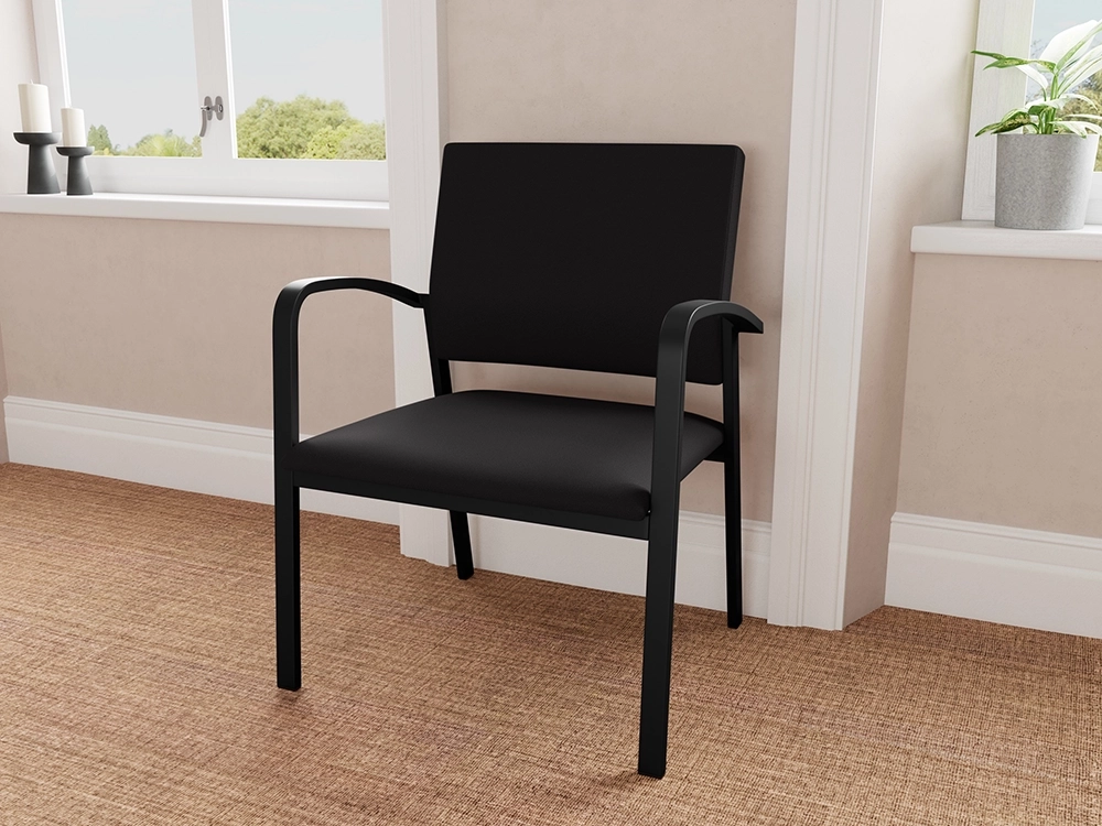 The Newport Oversize Guest chair with its bold, contemporary styling, sloped arm design, and upholstered seat and back cushions will give your space an inviting, welcoming air.
