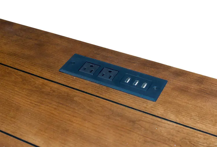 Desk Features include: 1 Drop Front Keyboard / Pencil Drawer, 3 Utility Drawers, 1 Letter / Legal File Drawer, 1 Pull-Out Printer Tray, 1 Power Center.