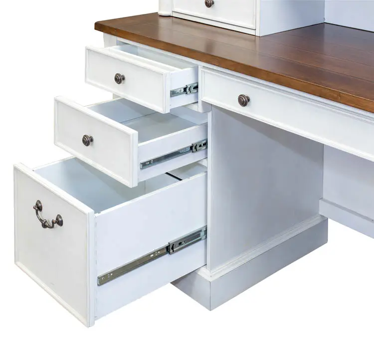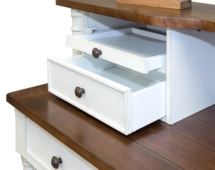 With its weathered wire brushed chalk finish, rustic knotty cherry tops and antiqued finished hardware, Durham will meet all your home and office needs.