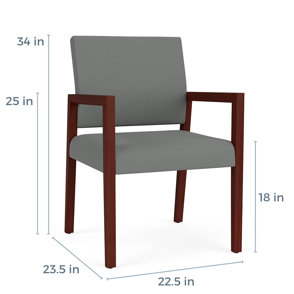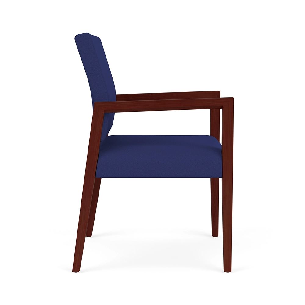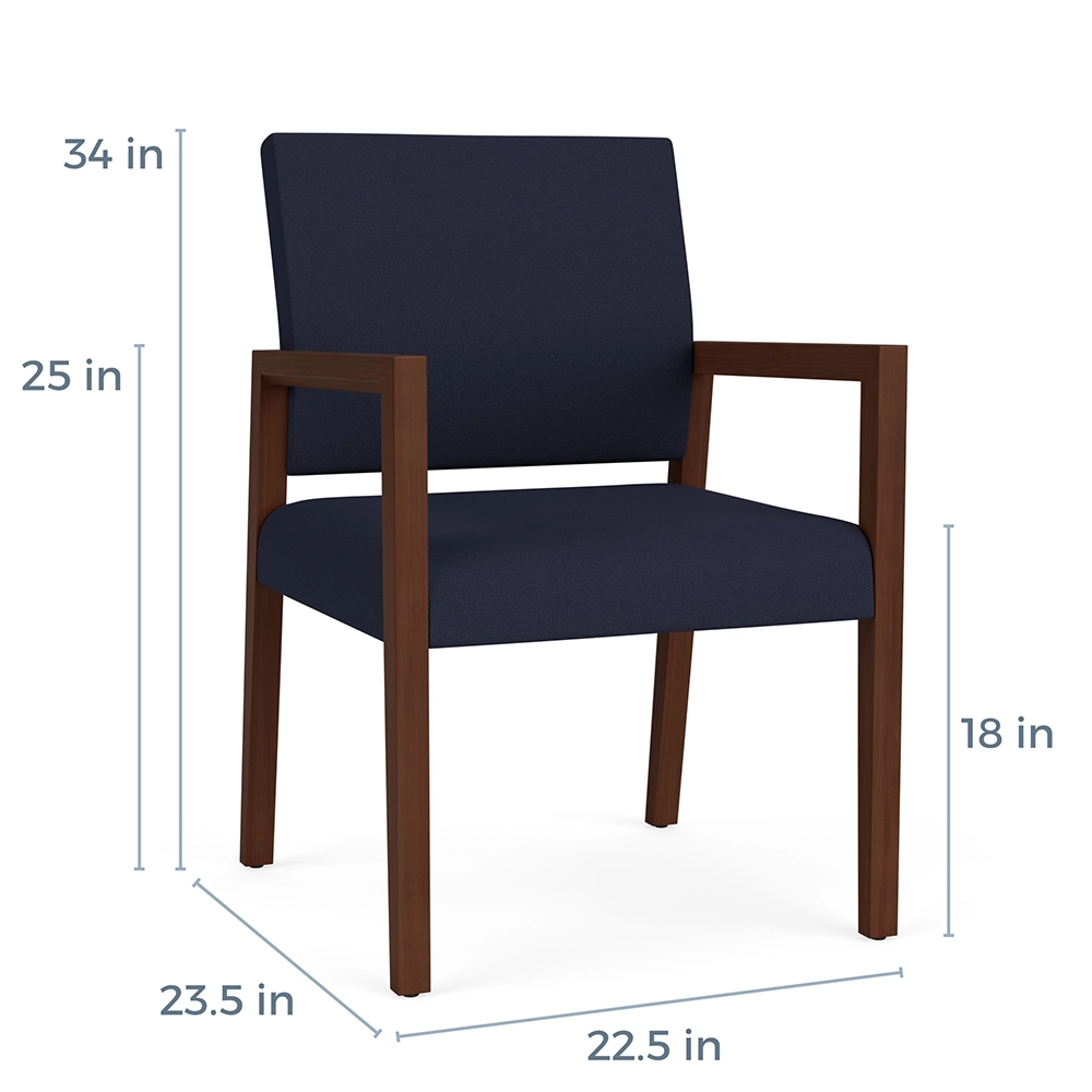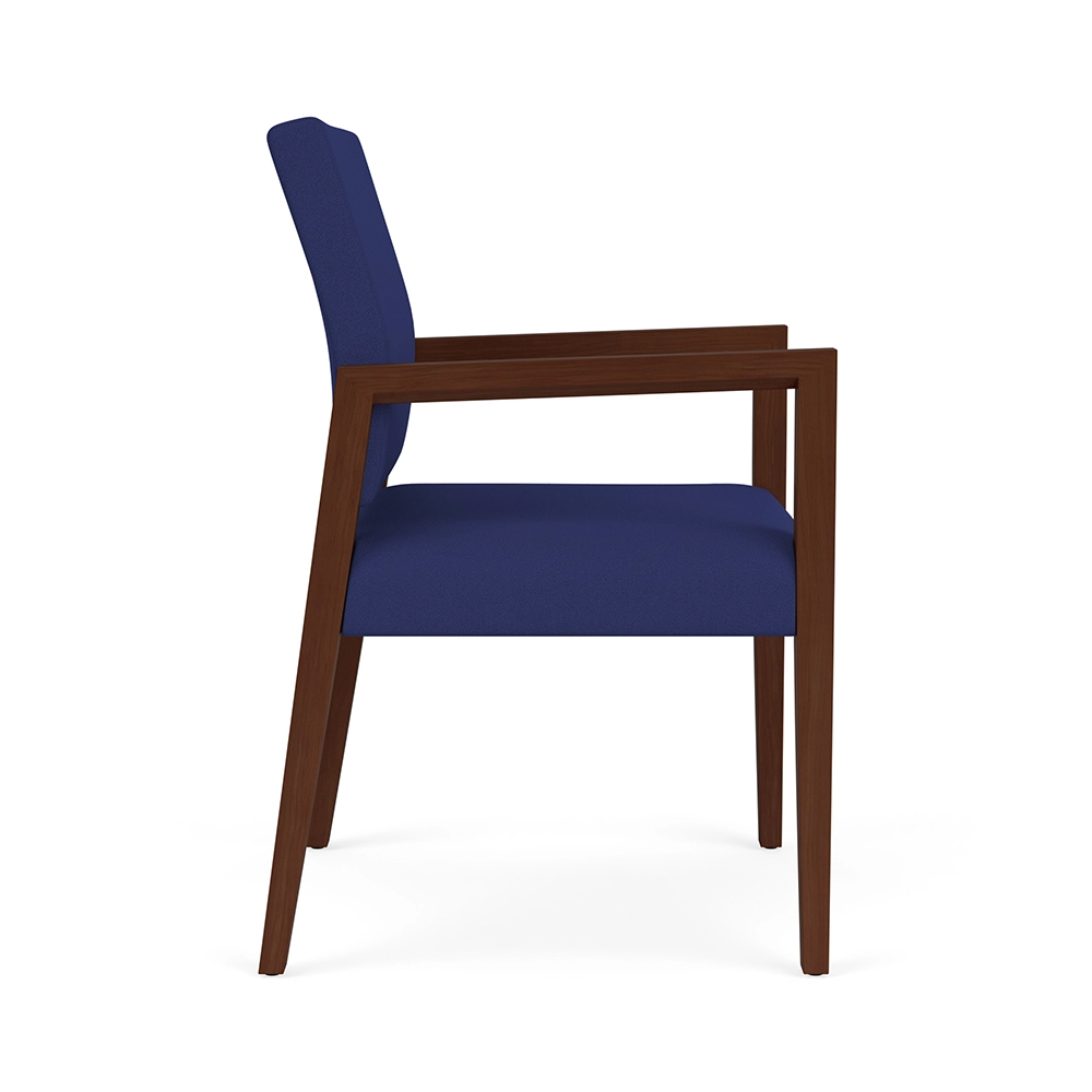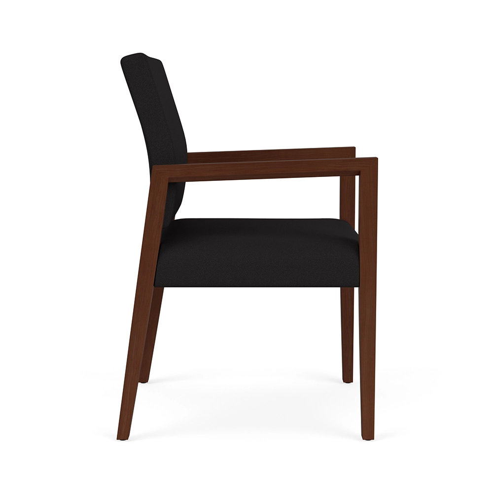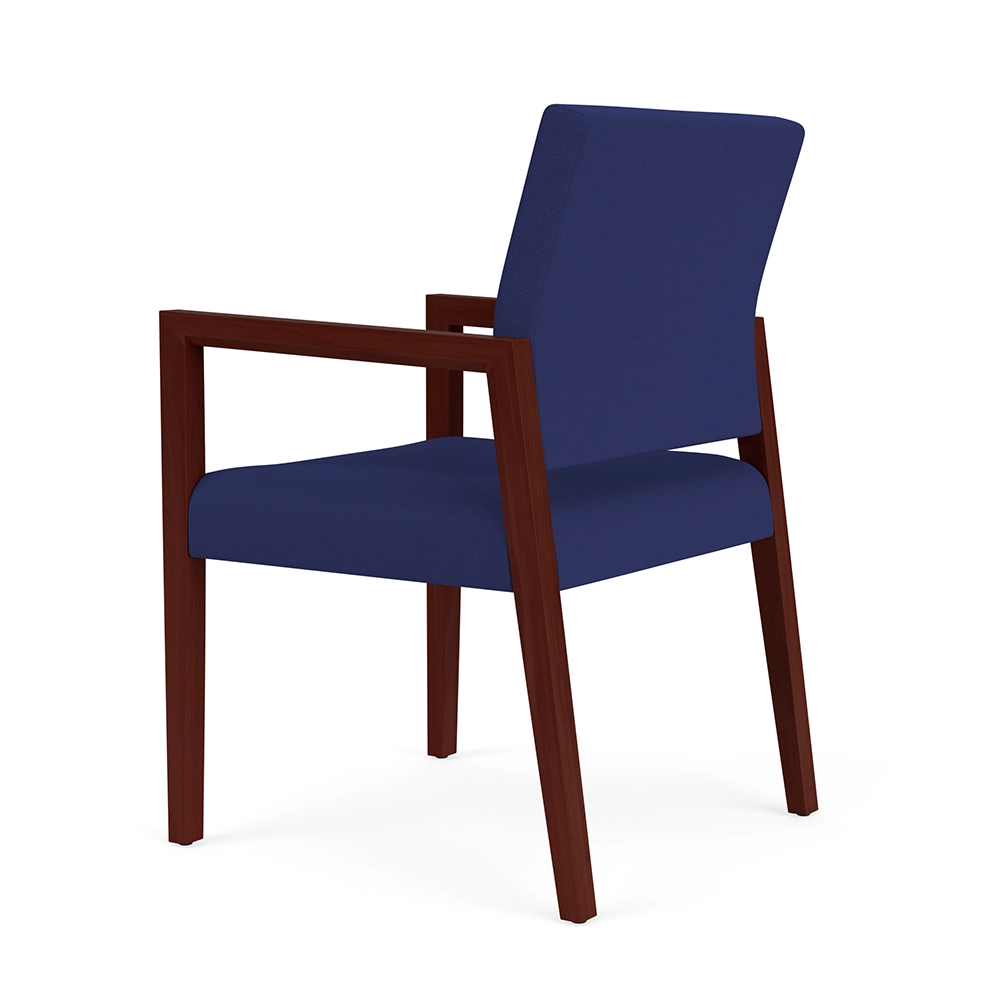 The Brooklyn guest chair with its contemporary geometric styling, distinctive chamfered edge under the armrest, and upholstered seat and back cushions will give your space an elegant, sophisticated look.