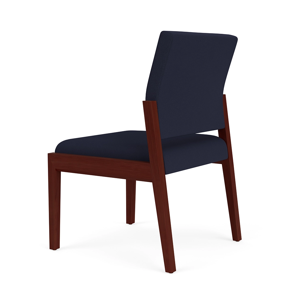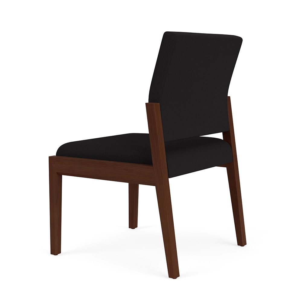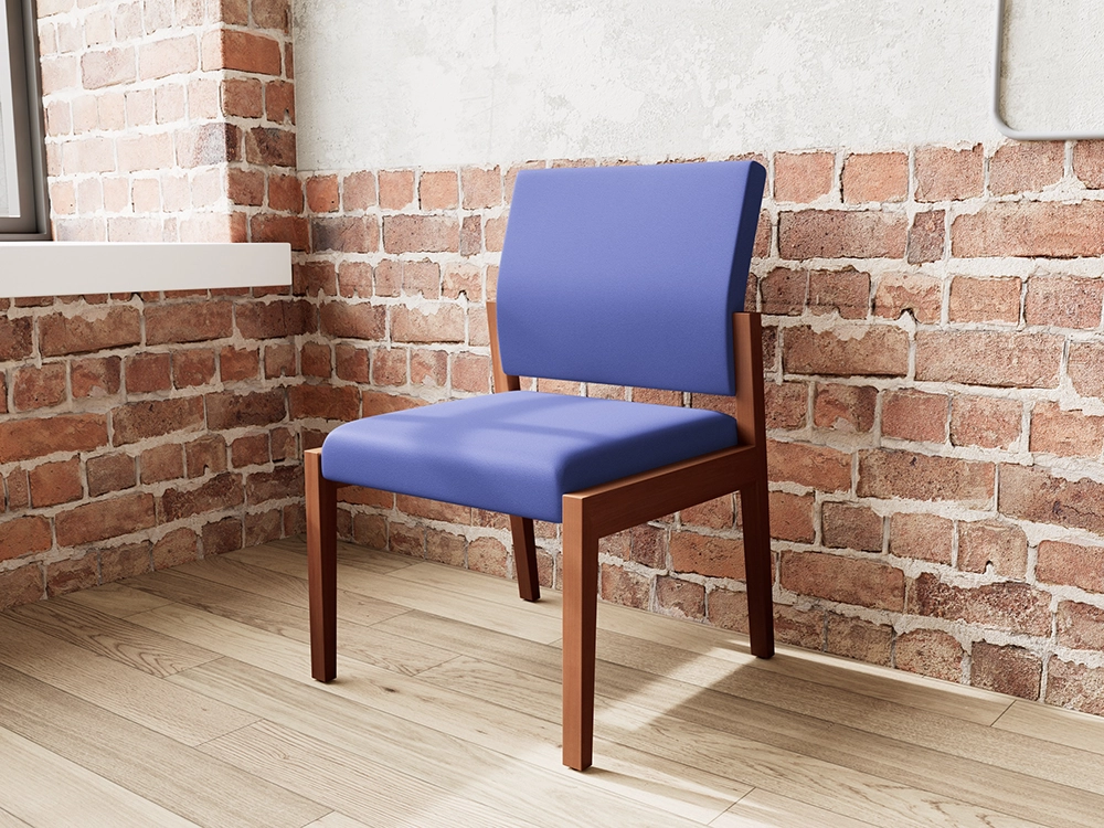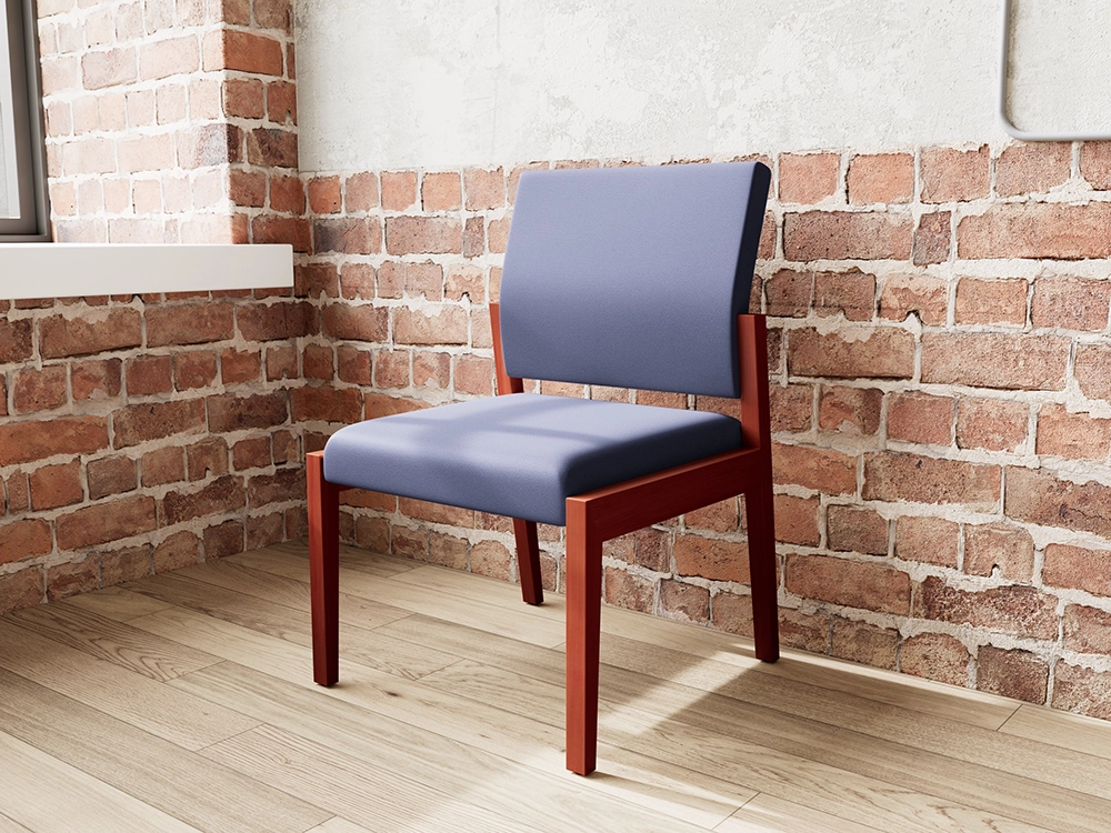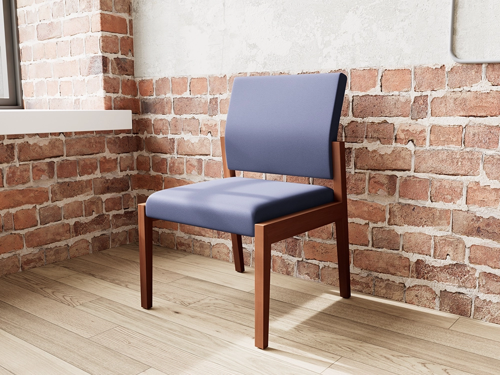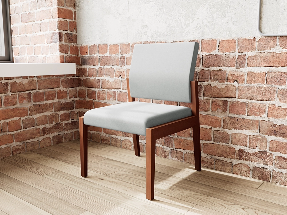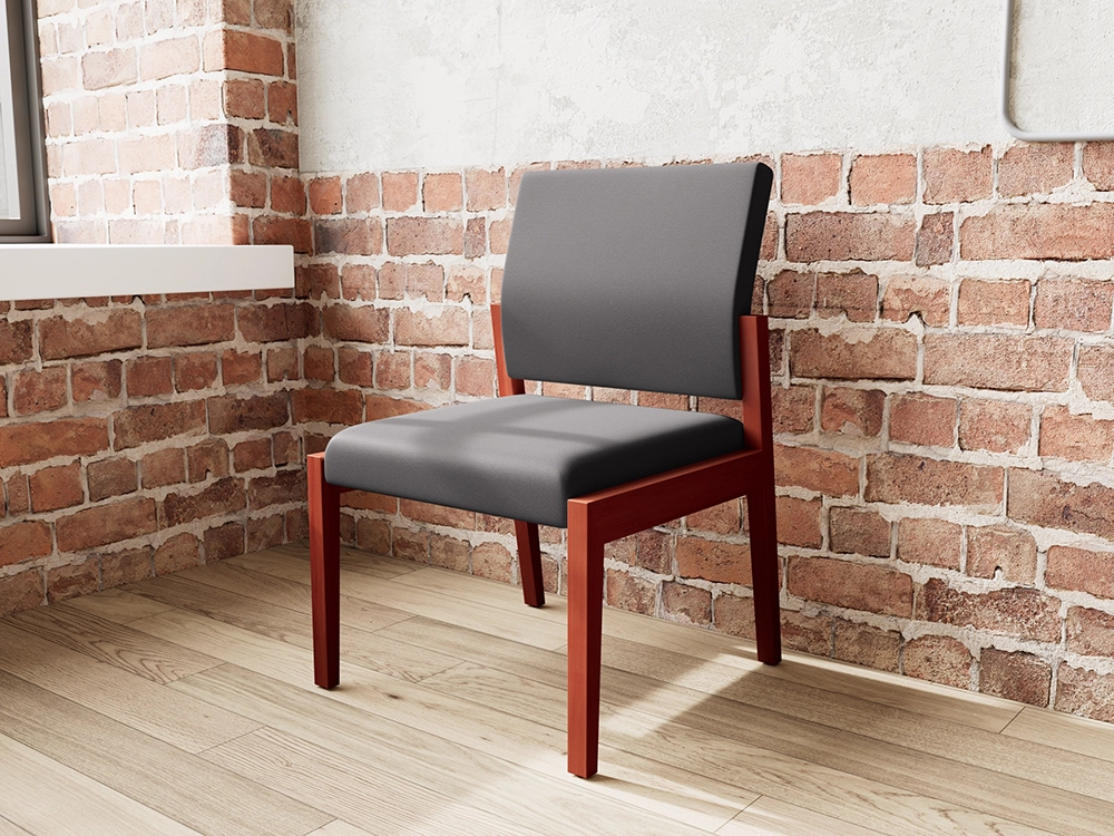 The Brooklyn armless guest chair with its contemporary geometric styling and upholstered seat and back cushions will give your space an elegant, sophisticated look.