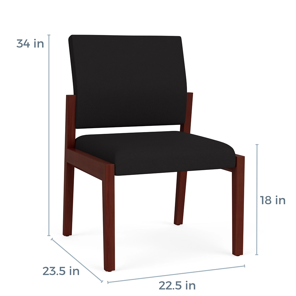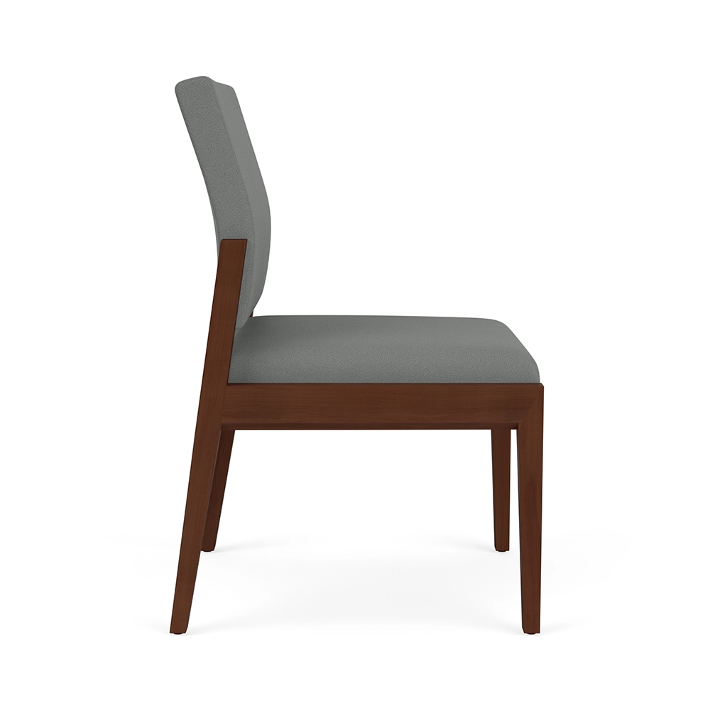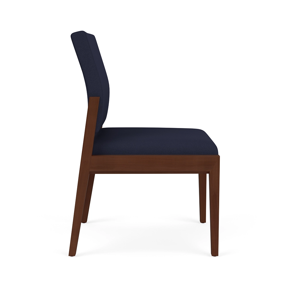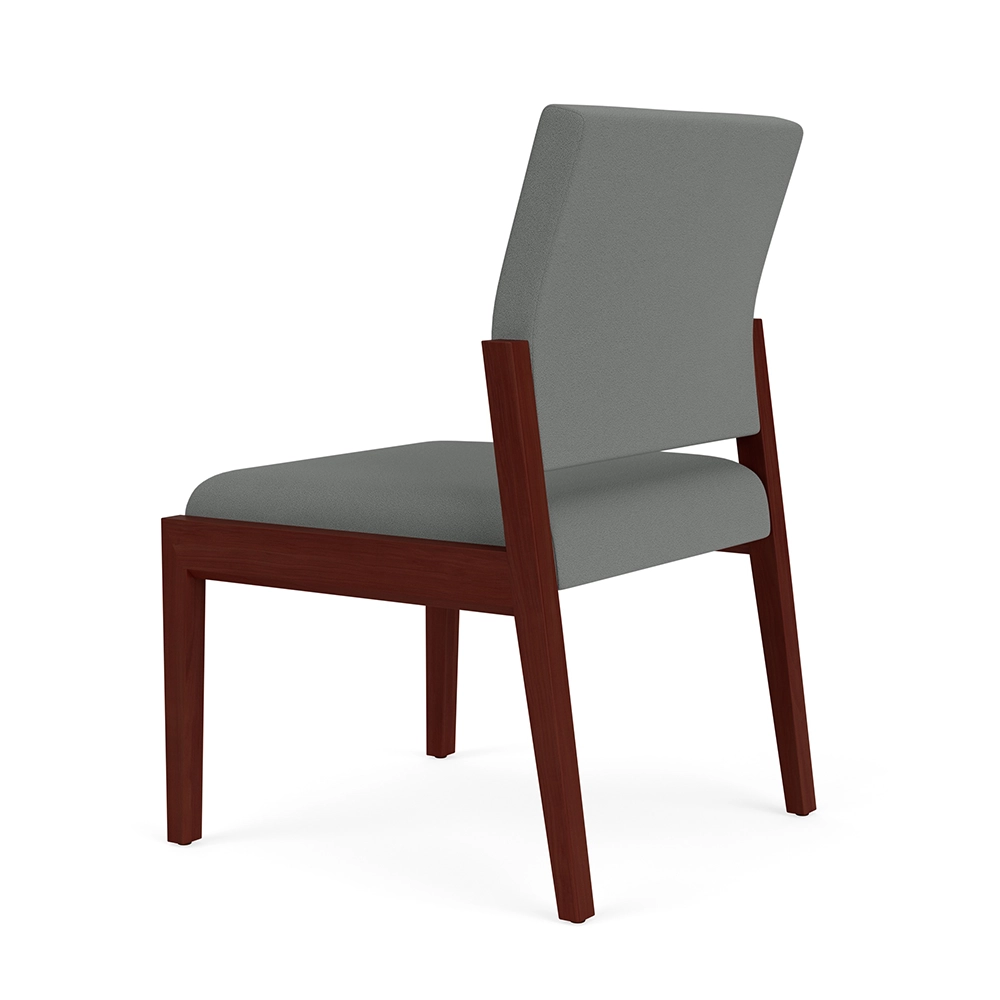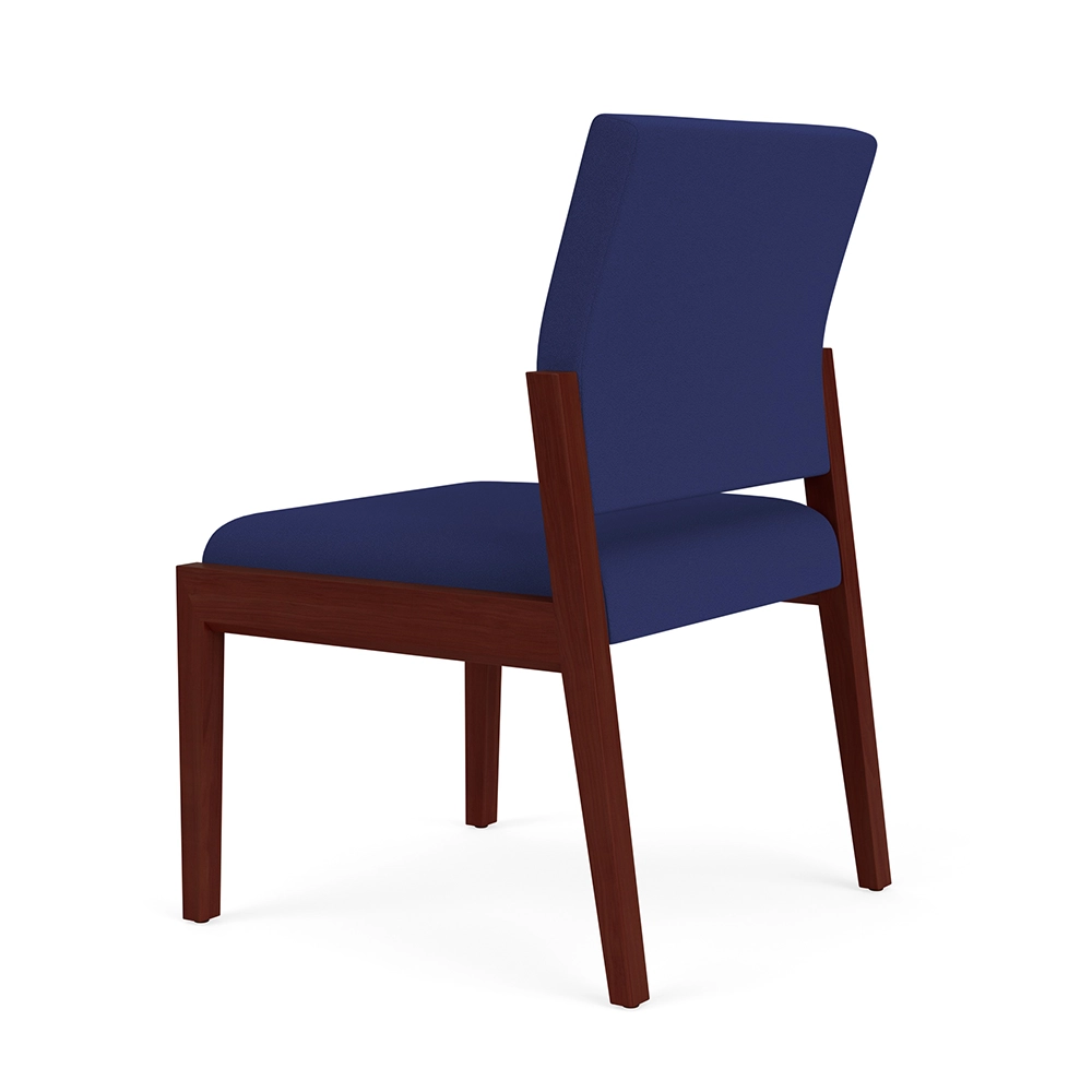 The Brooklyn armless guest chair with its contemporary geometric styling and upholstered seat and back cushions will give your space an elegant, sophisticated look.