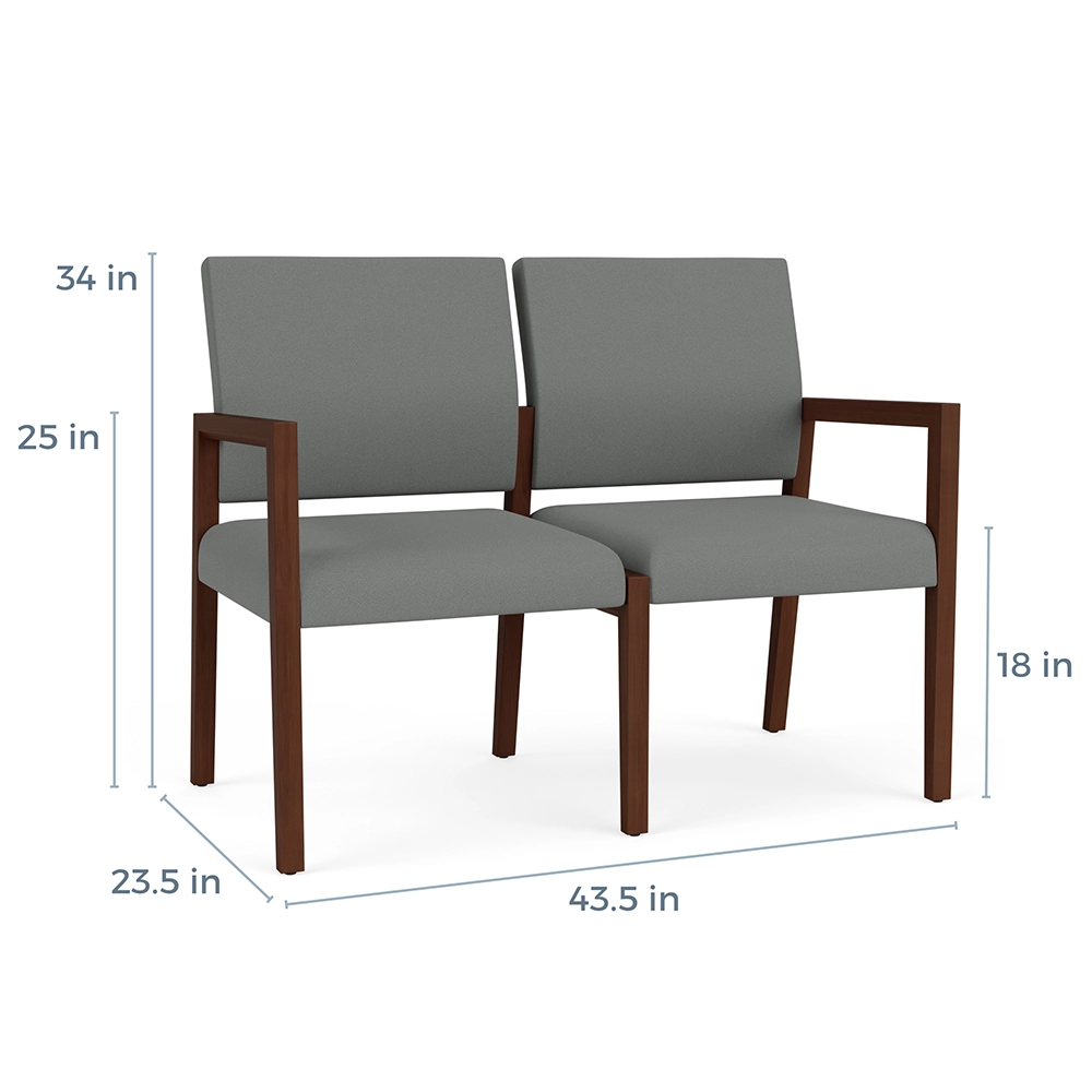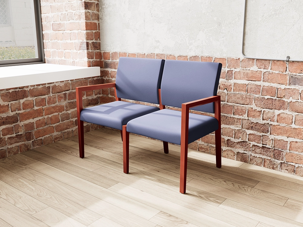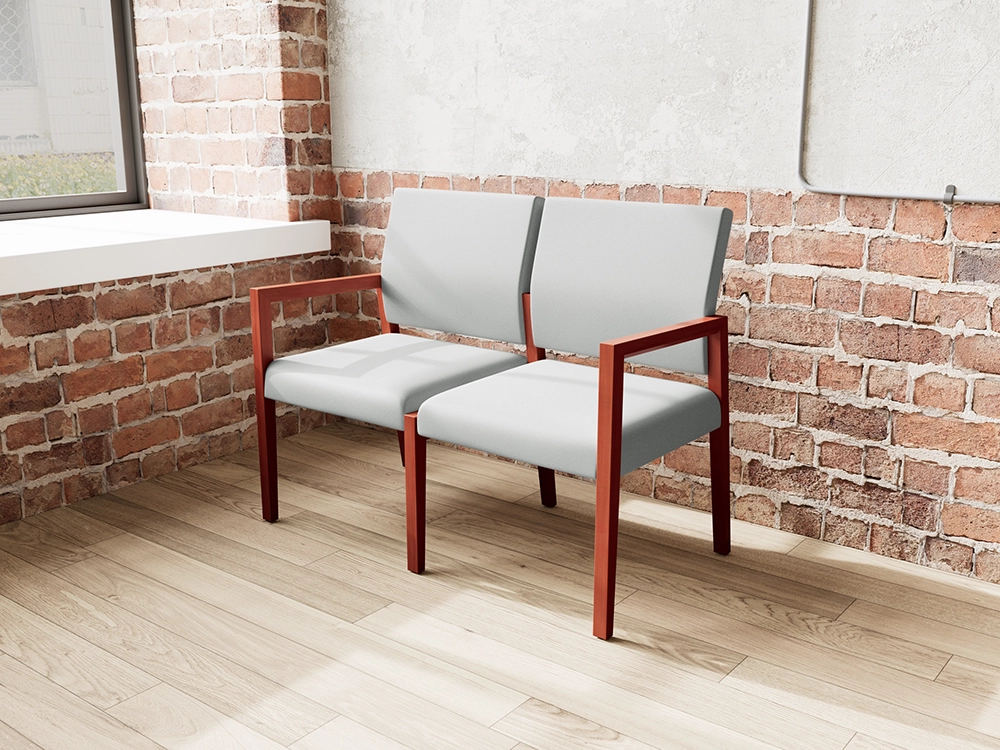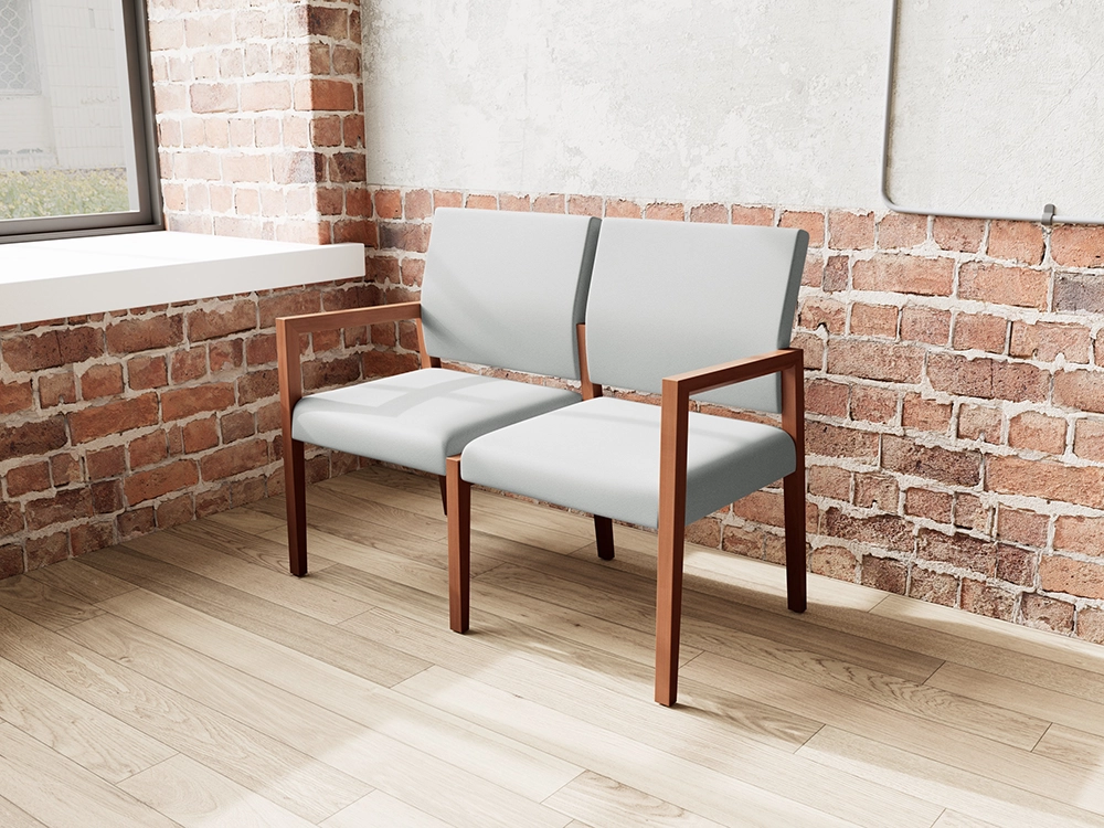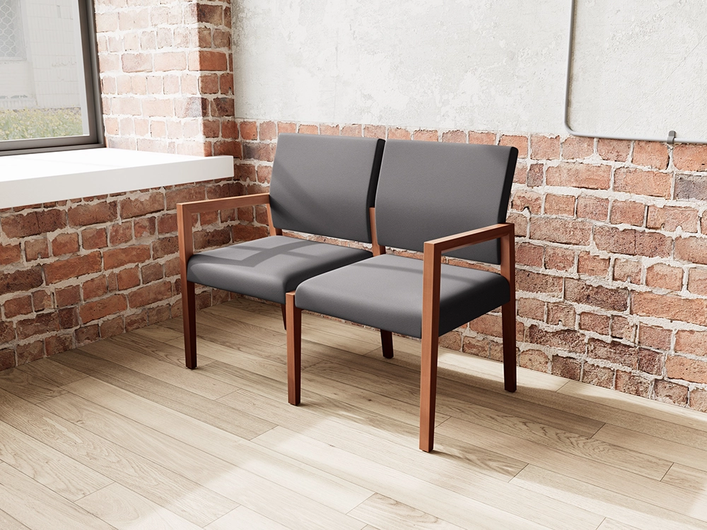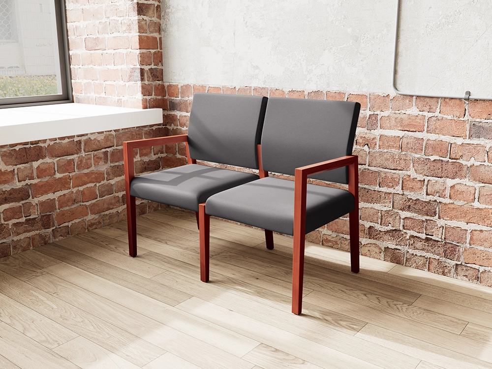 The Brooklyn 2 seat sofa with its contemporary geometric styling, distinctive chamfered edge under the armrest, and upholstered seat and back cushions will give your space an elegant, sophisticated look.