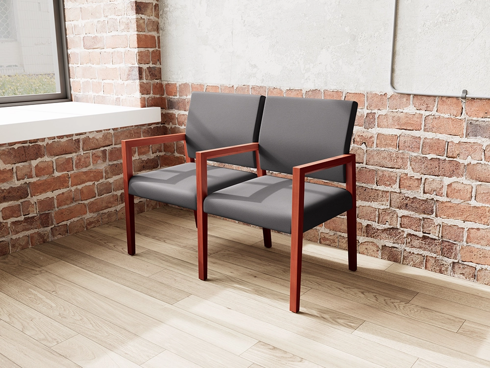 The Brooklyn 2 seater with its contemporary geometric styling, distinctive chamfered edge under the armrest, and upholstered seat and back cushions will give your space an elegant, sophisticated look.