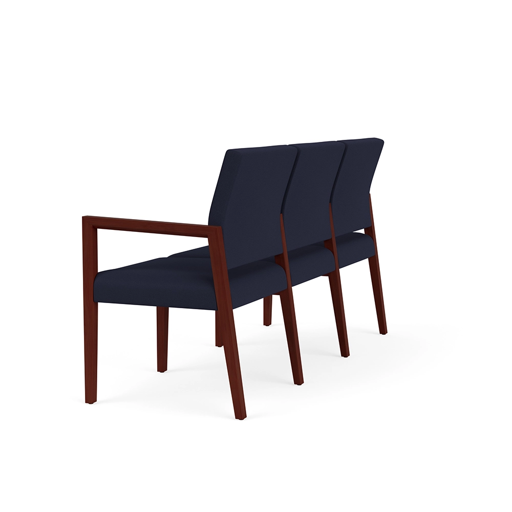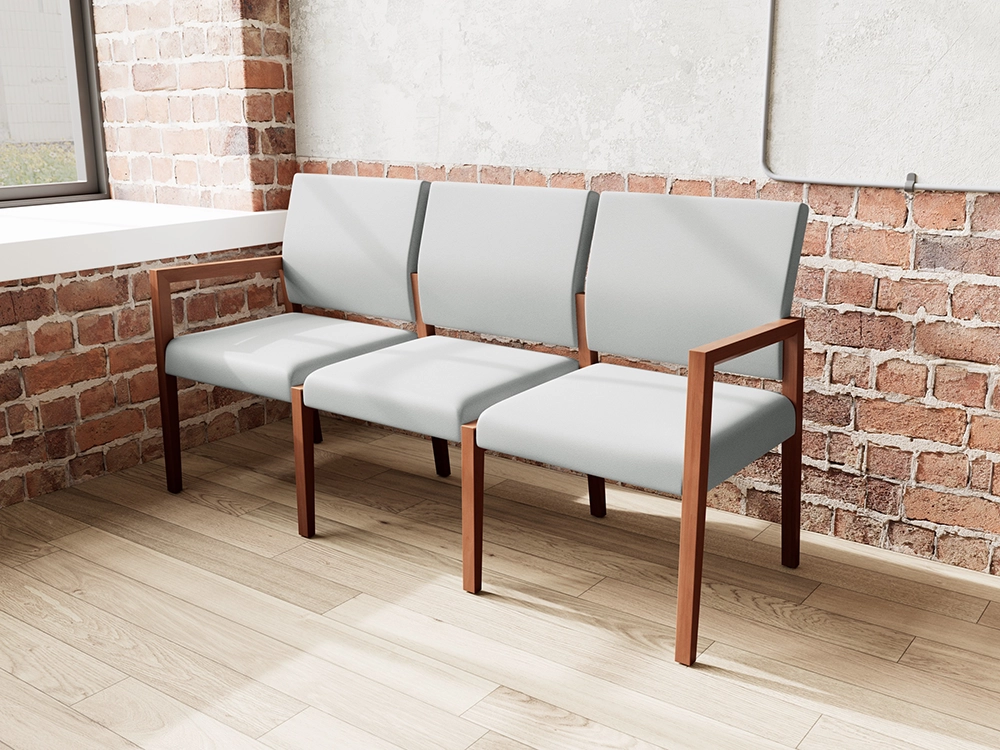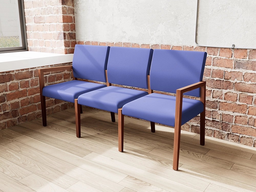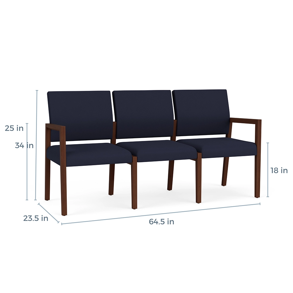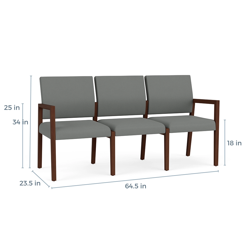 The Brooklyn 3 seat sofa with its contemporary geometric styling, distinctive chamfered edge under the armrest, and upholstered seat and back cushions will give your space an elegant, sophisticated look.