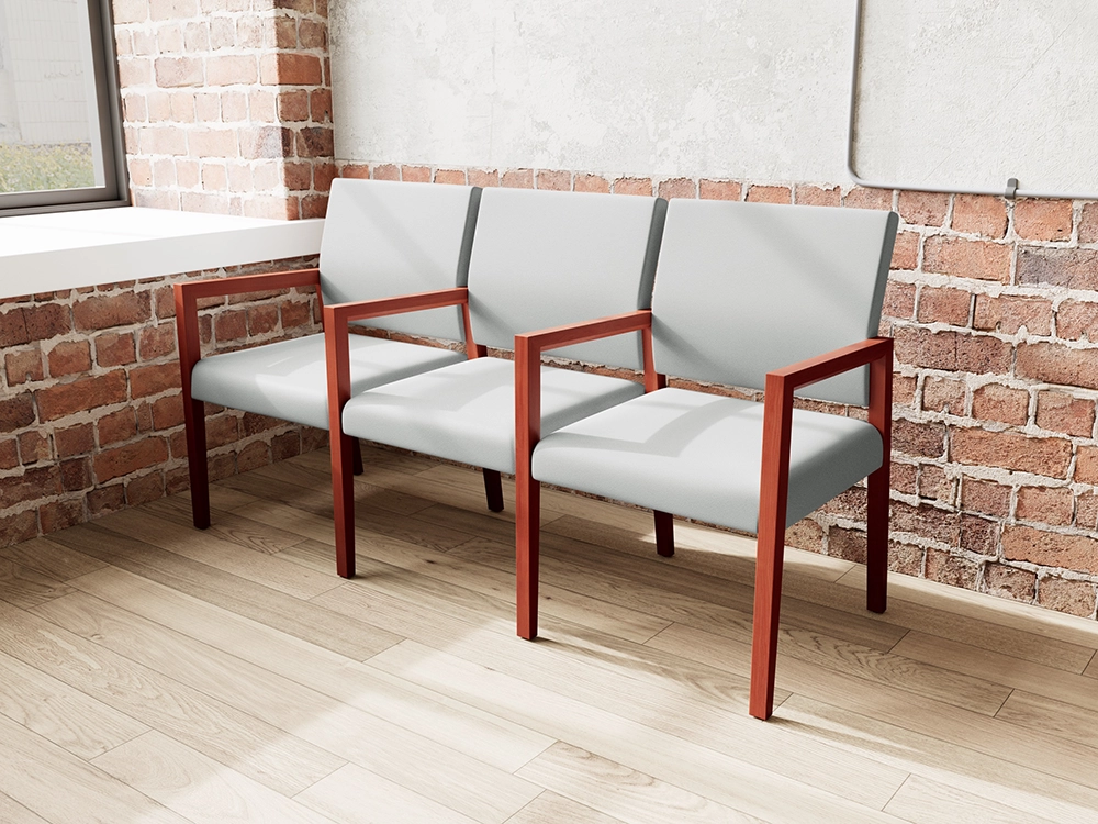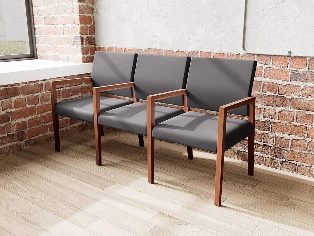 The Brooklyn 3 seater with its contemporary geometric styling, distinctive chamfered edge under the armrest, and upholstered seat and back cushions will give your space an elegant, sophisticated look.