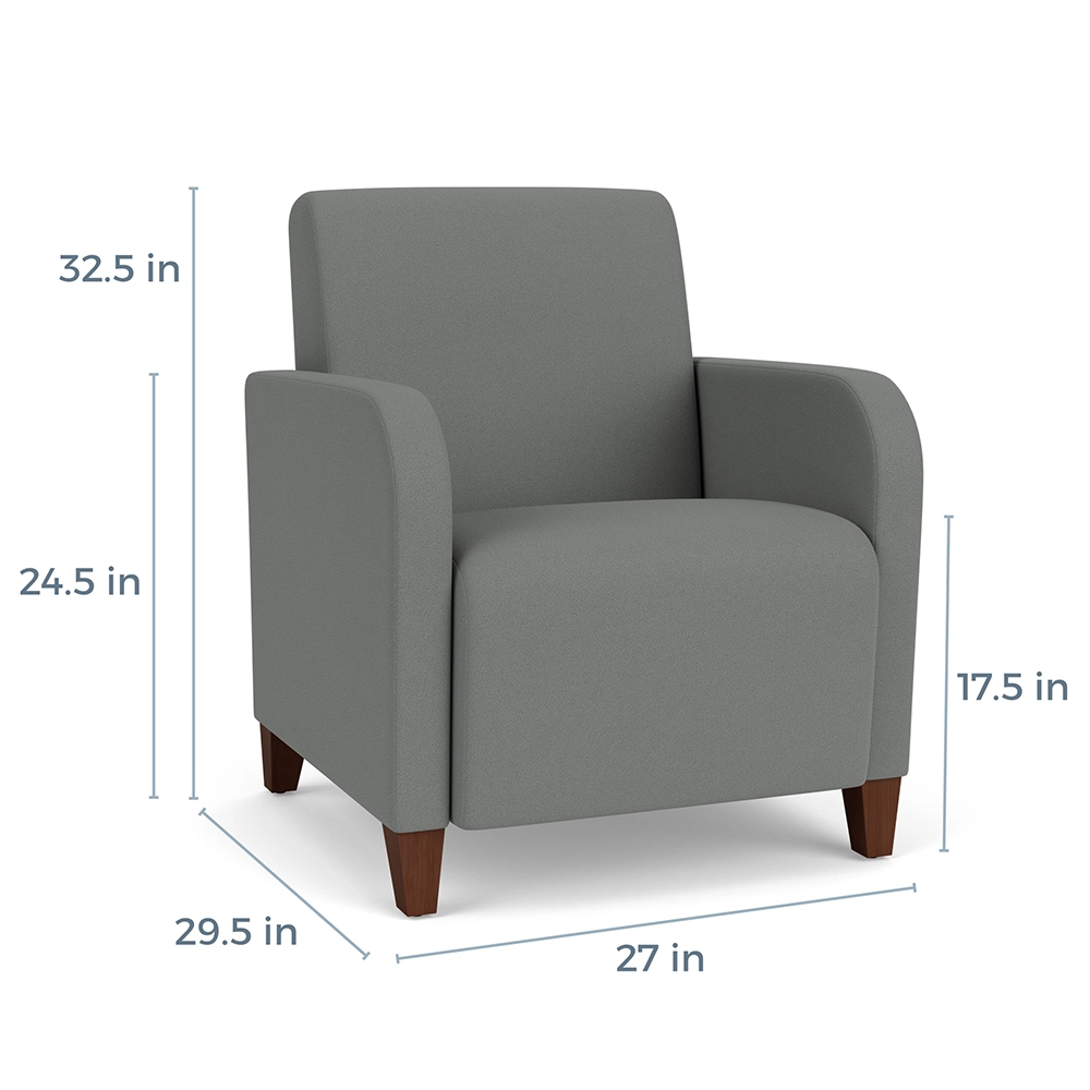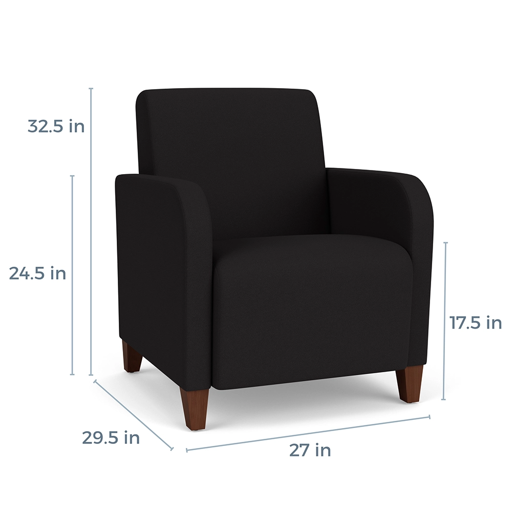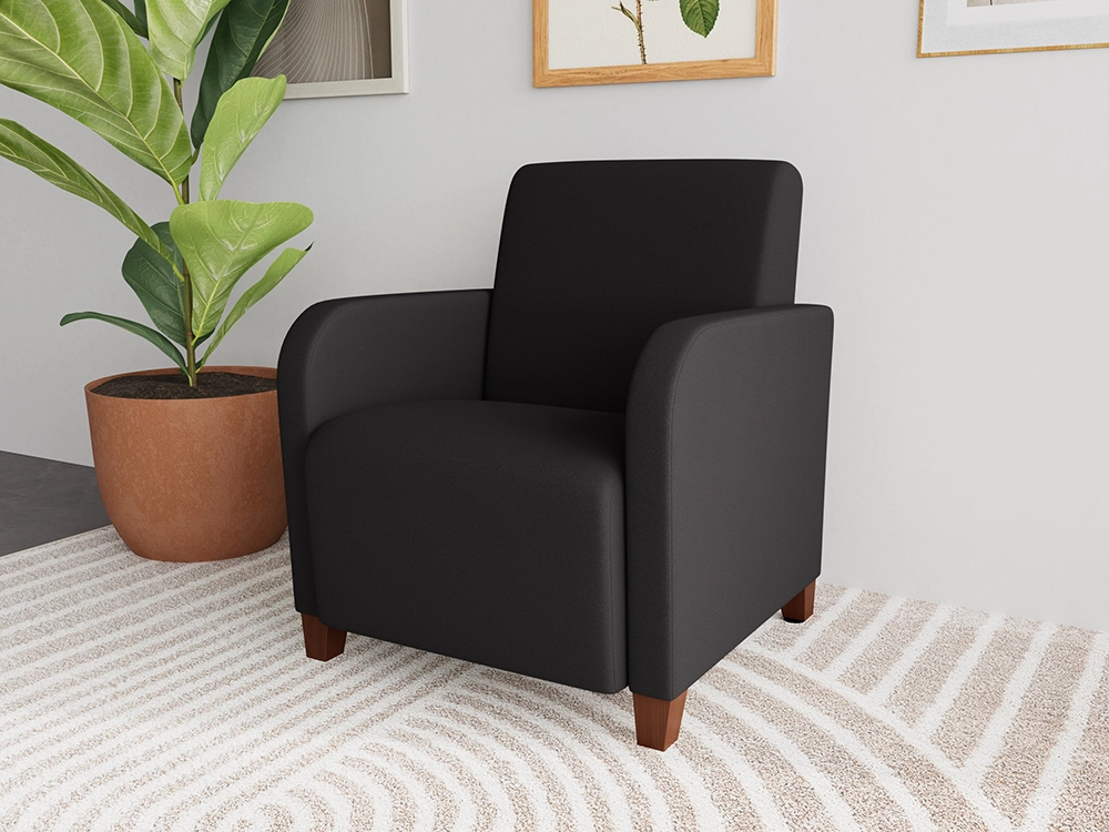 The Siena guest chair with its pleasing rounded arm design and fully-upholstered styling will give your space a sophisticated and contemporary look.