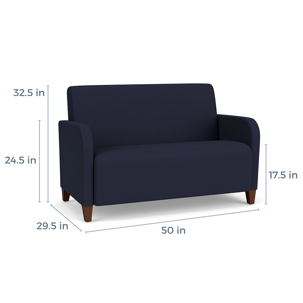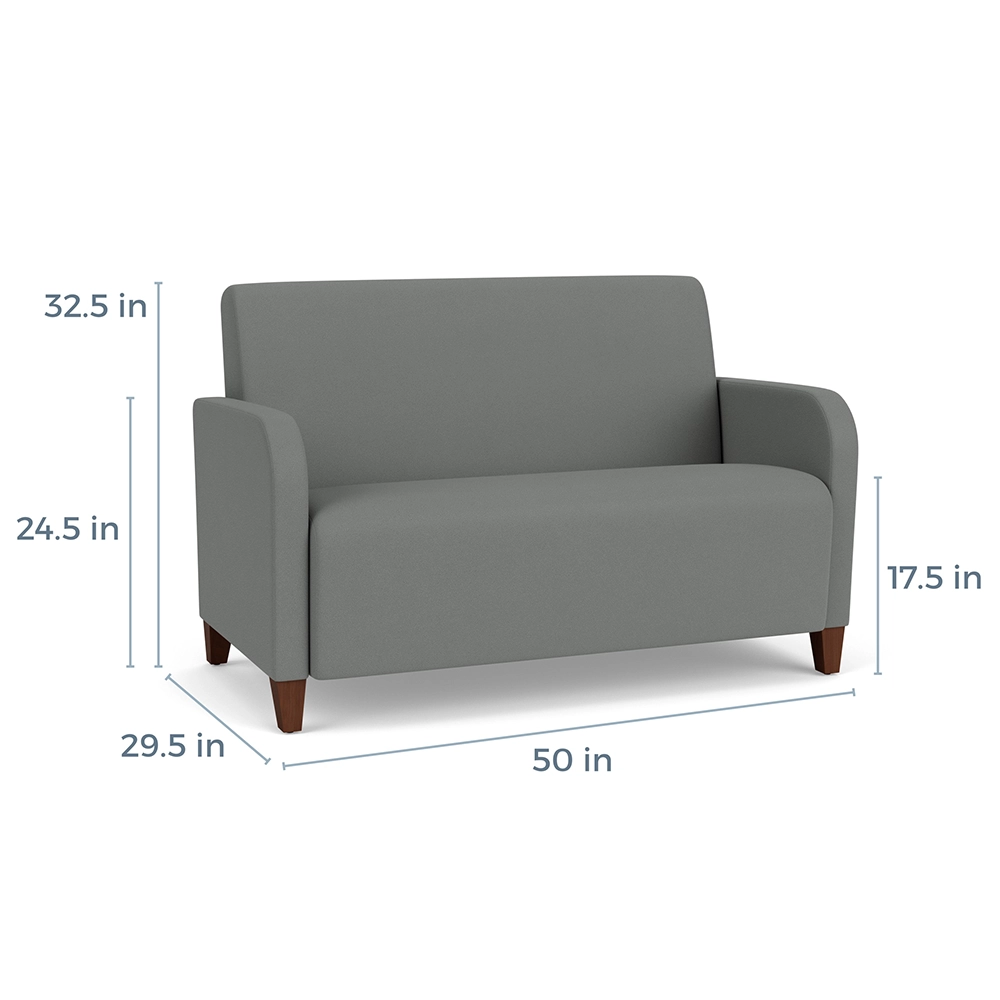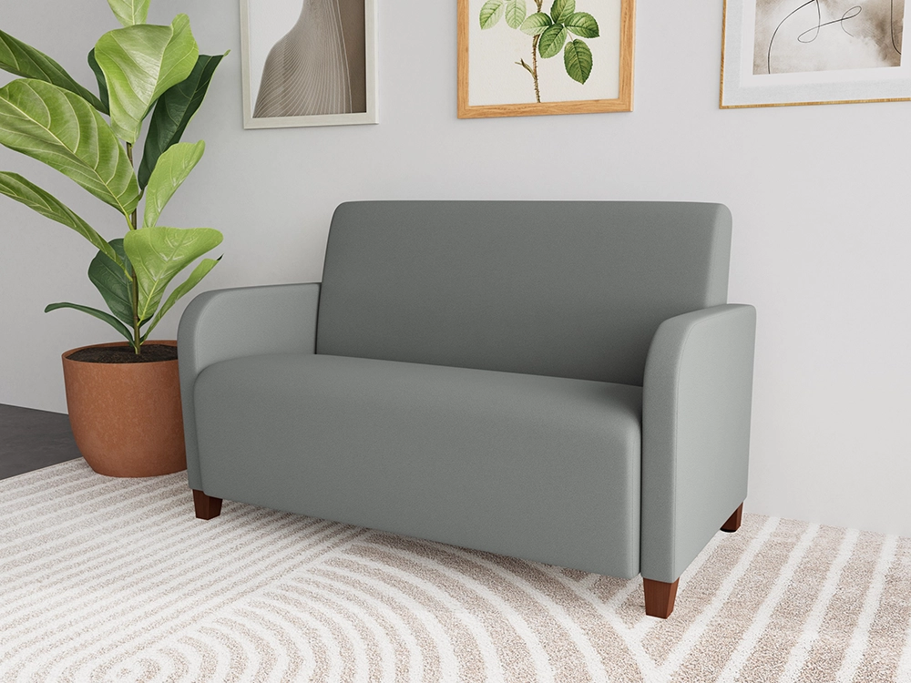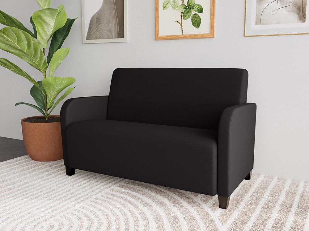 The Siena loveseat with its pleasing rounded arm design and fully-upholstered styling will give your space a sophisticated and contemporary look.