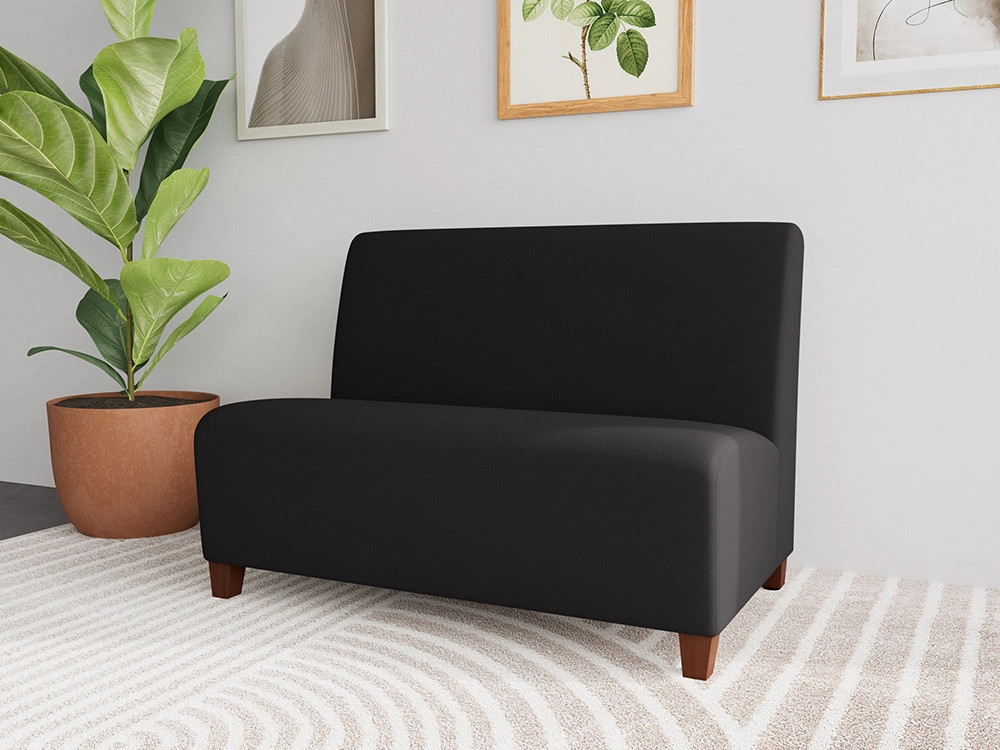 The Siena armless loveseat with its pleasing rounded design and fully-upholstered styling will give your space a sophisticated and contemporary look.