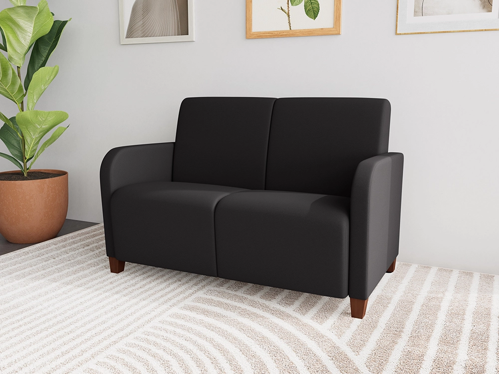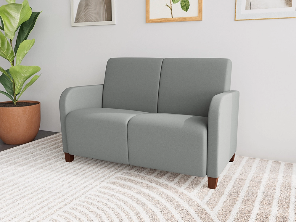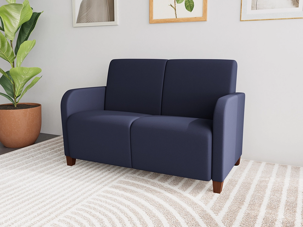 The Siena 2 seat sofa with its pleasing rounded arm design and fully-upholstered styling will give your space a sophisticated and contemporary look.