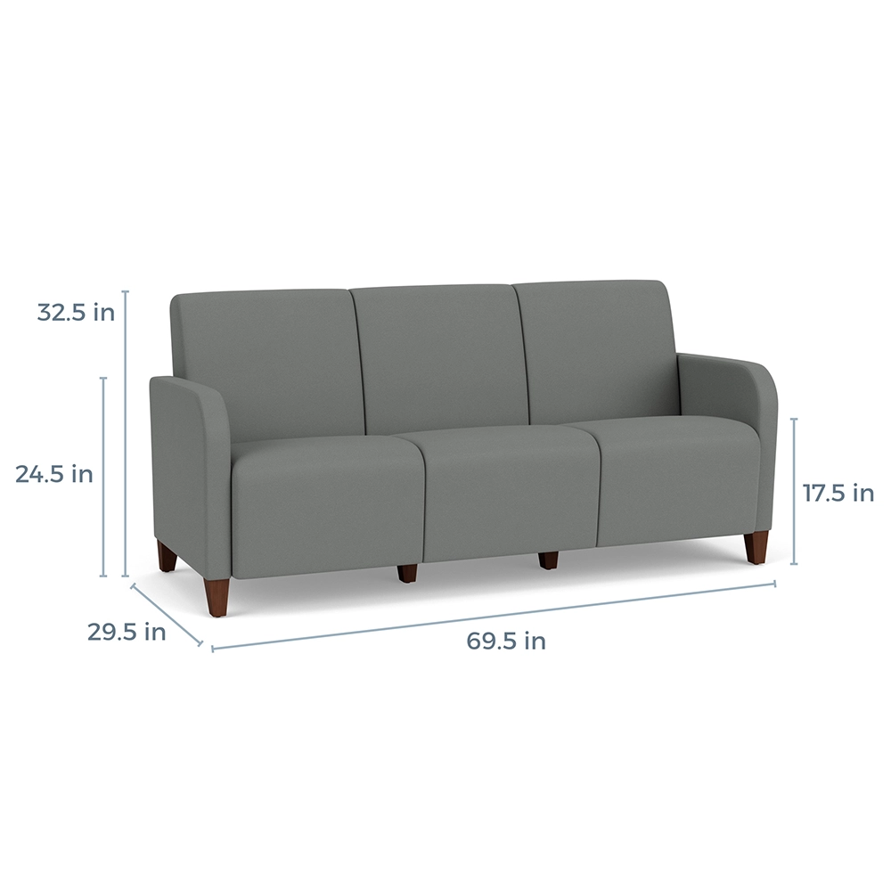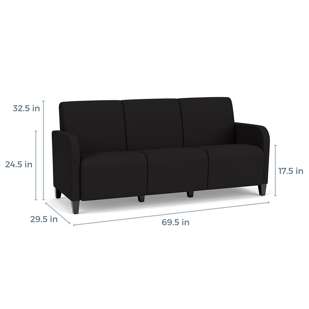 The Siena 3 seat sofa with its pleasing rounded arm design and fully-upholstered styling will give your space a sophisticated and contemporary look.