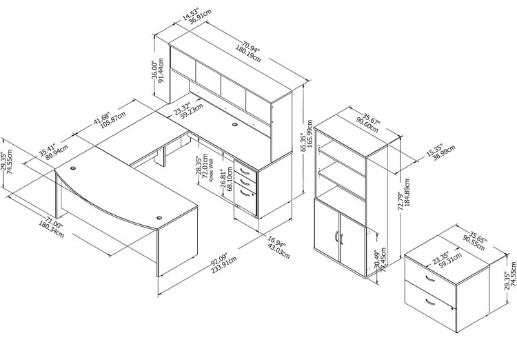 Give your office the workspace you need and the style you deserve with this Bush Business Furniture Studio C U-Shaped Desk, Hutch, Bookcase and 2 File Cabinets (assembled).