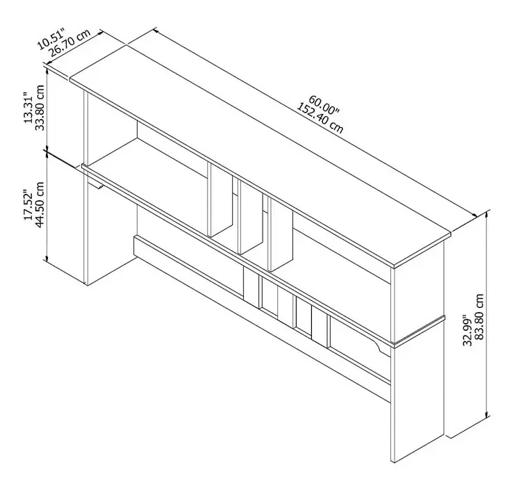 Overall: 60 in W x 10.51 in D x 32.99 in H