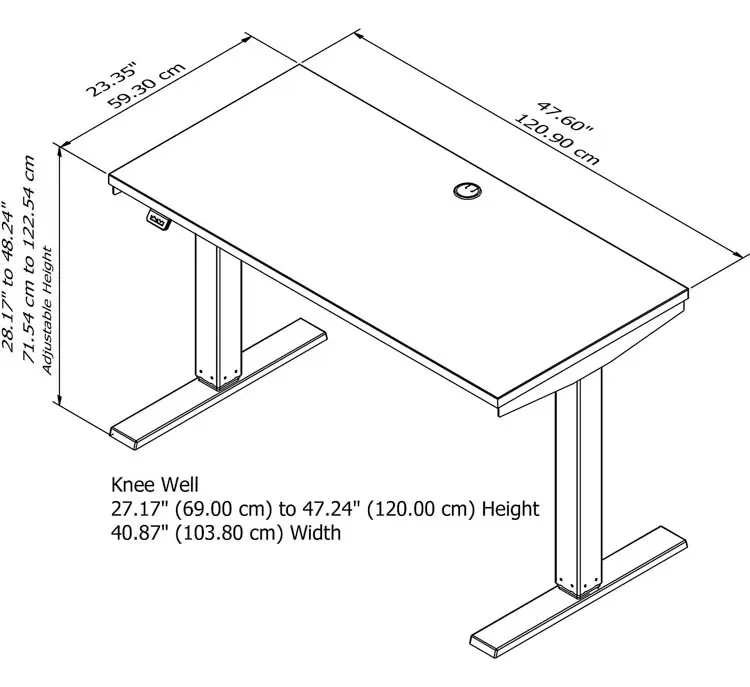 • Electric Height Adjustable Standing Desk includes a motorized base and 48" W x 24" D top surface with built-in wire management