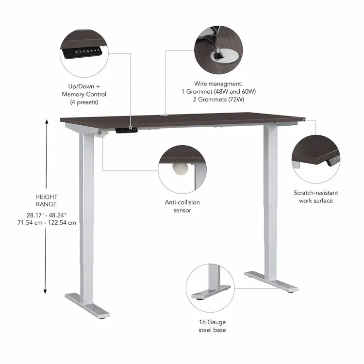• Electric Height Adjustable Standing Desk includes a motorized base and 60" W x 30" D top surface with built-in wire management