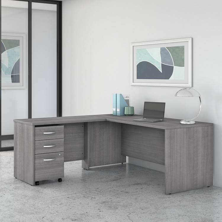 The 42"W Return attaches to either side of the Desk to form a left or right handed L-Shaped layout, while the 3 Drawer Mobile File Cabinet rolls with you throughout your office or remains in place as needed on any surface.