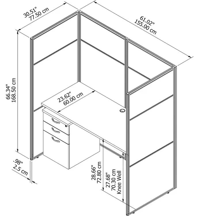 • Bundle includes: 60"W x 24"D Straight Office Desk, Set of 2 - 60"W x 66"H Cubicle Panels with Corner Connectors, 3 Drawer Mobile File Cabinet