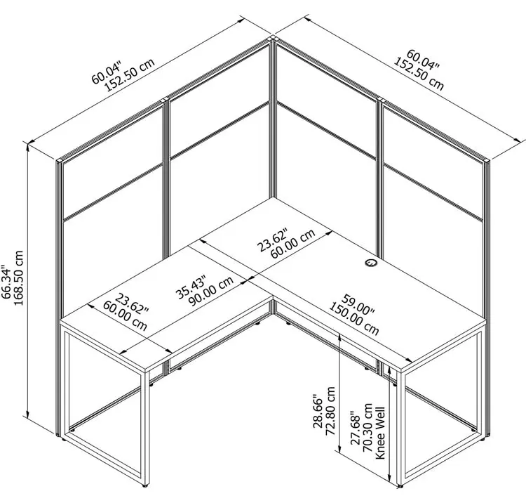 • Bundle includes: 60"W x 24"D Straight Office Desk, 36"W x 24"D Desk Return, Set of 2 60"W x 66"H Cubicle Panels with Corner Connectors