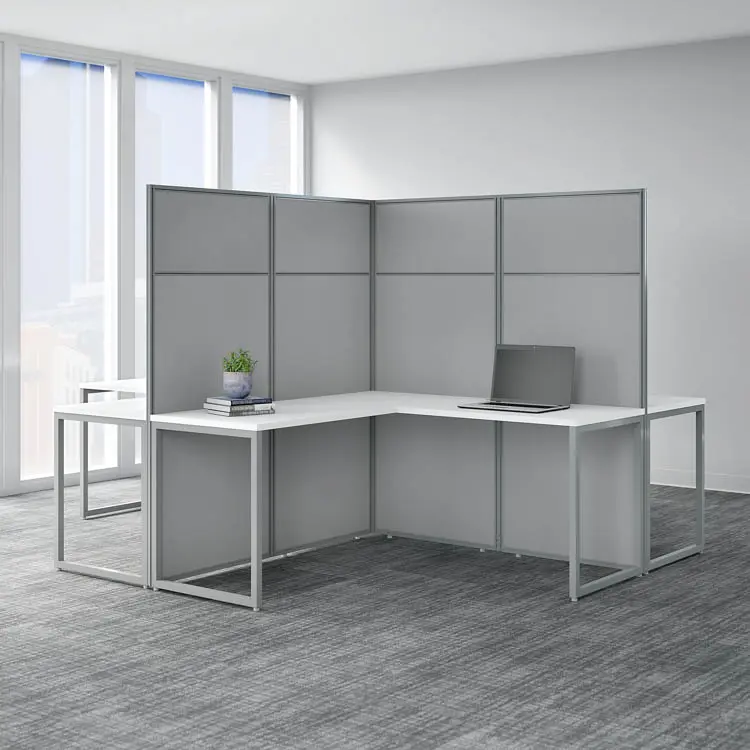The Bush Business Furniture Easy Office 60"W 4 Person L-Shaped Cubicle Desk Workstation with 66"H Panels offers a simple configuration that can be set up quickly, yet is durable enough to withstand the rigors of everyday use in a fast-paced professional environment.