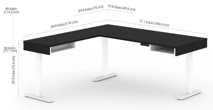 72in W L-Shaped Standing Desk with Credenza by Bestar