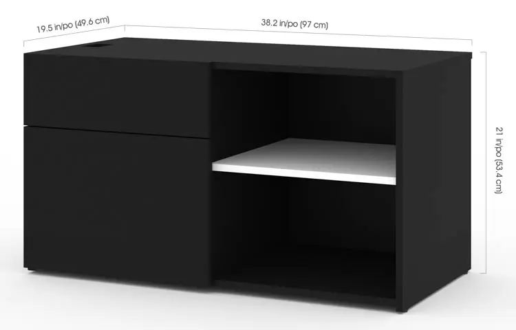 • Credenza provides 1 utility drawer, 1 file drawer and 1 open space