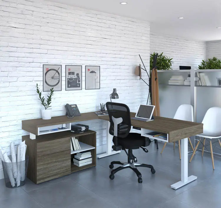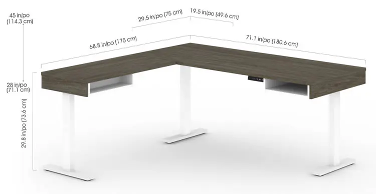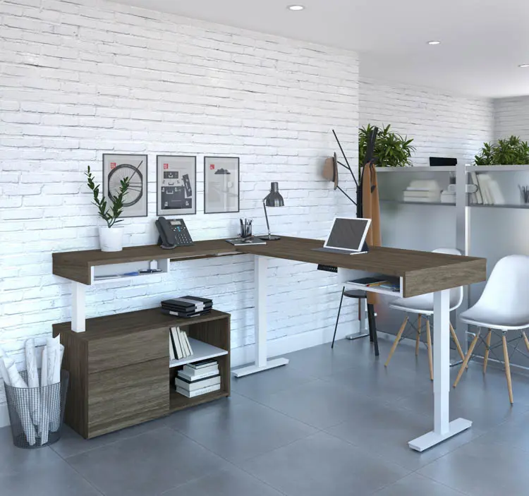 72in W L-Shaped Standing Desk with Credenza by Bestar