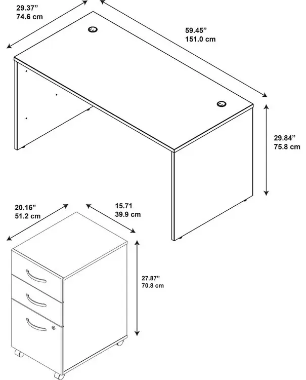 • Bundle includes: 60"W x 30"D Office Desk, 3 Drawer Mobile File Cabinet