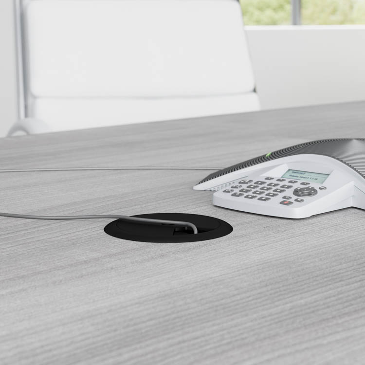 • Tech Ready: A built-in wire management grommet allows for convenient use of laptops, projectors, and other equipment
